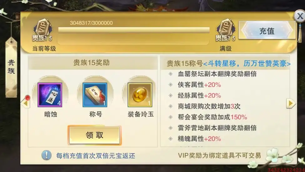 游戏说明:游戏为四职业单机版一键端,需要电脑架设,架设简单,不能联网,不支持IOS,只支持安卓,需要PC端安卓模拟器运行。满级VIP,可领首冲、月卡、终身卡和基金等等。