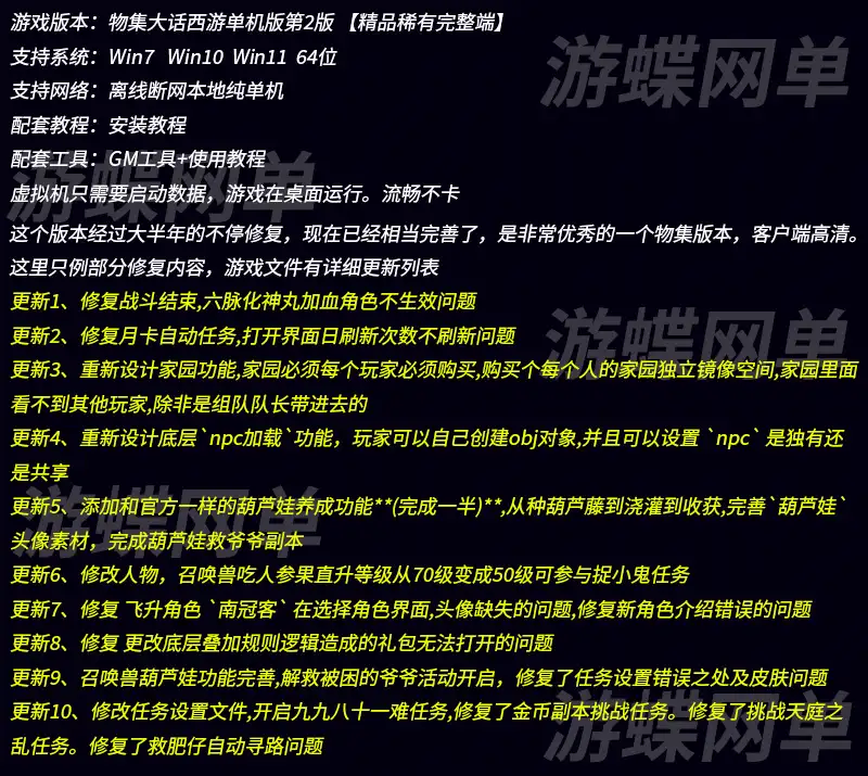 游蝶网单大话西游单机版第2版物集逍遥仿官五种族修复完善家园助战
