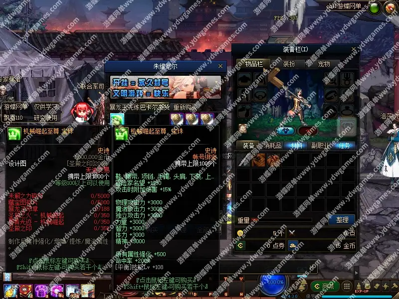 游蝶网单惊天动地单机版6职业EP29新副本装备时装翅膀强化+20商店
