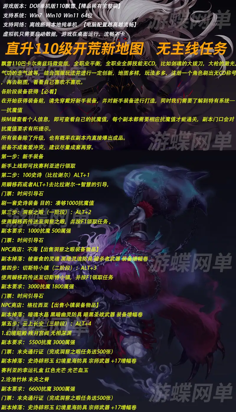 游蝶网单DOF单机版85黑金版全职业二觉女鬼剑E2/E3异界巴卡尔