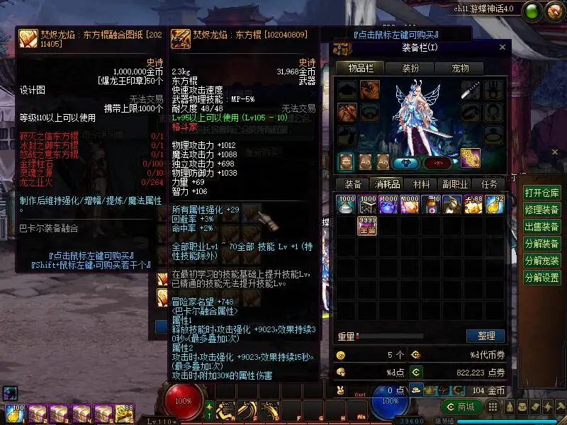 游蝶网单DOF110级神话10.0真女圣职4职业真女鬼剑真魔枪士巴卡尔