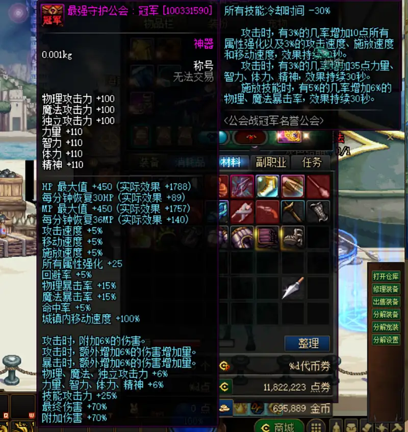 【DOF DNF网单游戏】110级神话一键端10.0真女圣职4职业真女鬼剑真魔枪士巴卡尔
