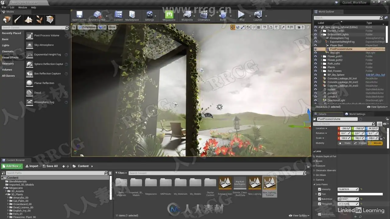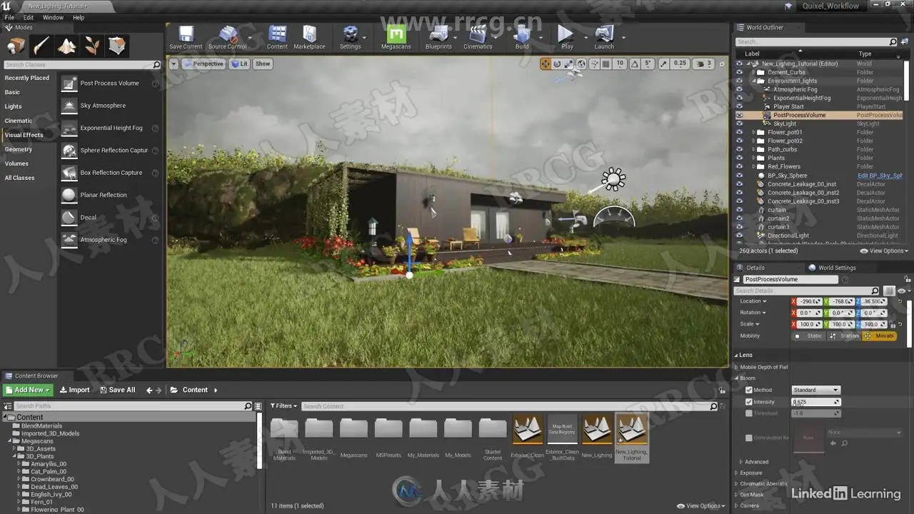 Bring photorealistic architectural scenes to life using Quixel Megascans. In this course, join instructor Zaheer Mukhtar as he shows how to use Megascans—a library of scanned assets and powerful tools that are free to use with Unreal Engine—in your architectural visualization workflow. Zaheer begins by covering the basics of Megascans, including how to install Quixel Bridge, set up a library path, and export Megascans assets from Bridge to Unreal Engine 4 (UE4) to populate your scene. He then shows how to lay out a realistic outdoor architectural scene in UE4. Learn how to assign materials and surfaces to different objects, block out the layout, set up landscapes, place 3D plants throughout a scene, and set up lighting and post processing effects in UE4.