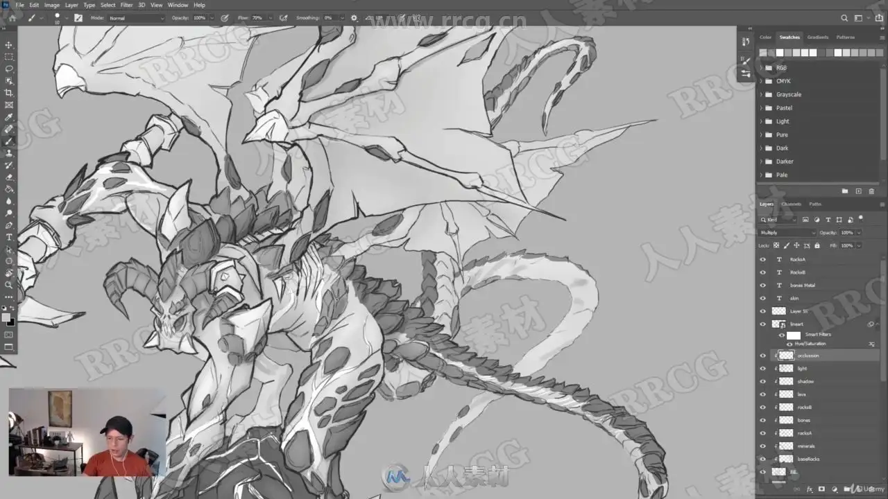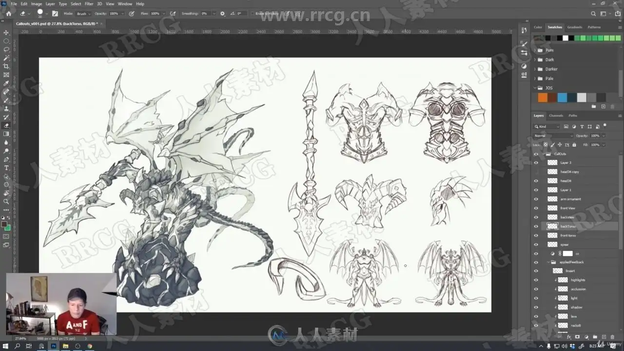 本教程是关于游戏角色概念艺术设计数字绘画实例训练视频教程,时长:17小时27分,大小:14.8 GB,MP4高清格式,附源文件,作者:Digital Art HQ School,共70个章节,附源文件,语言:英语。