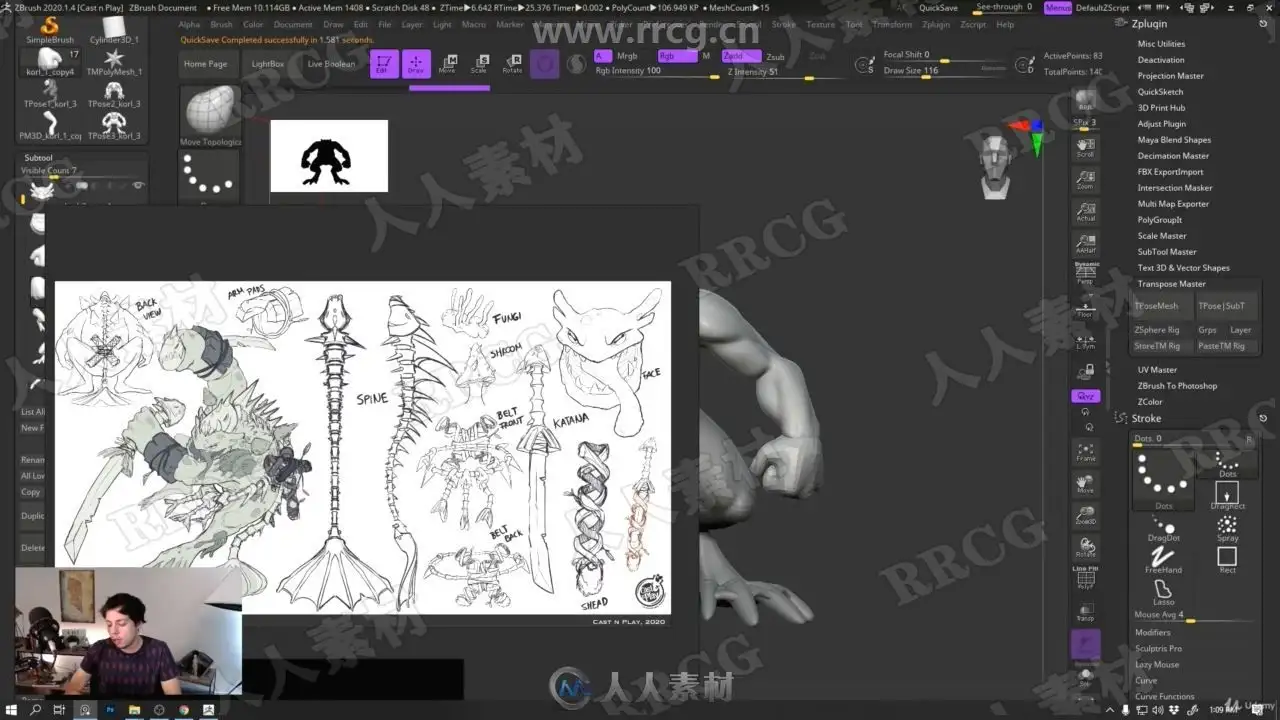ZBrush是一个数字雕刻和绘画软件,它以强大的功能和直观的工作流程彻底改变了整个三维行业。在一个简洁的界面中,ZBrush 为当代数字艺术家提供了世界上最先进的工具。以实用的思路开发出的功能组合,在激发艺术家创作力的同时,ZBrush 产生了一种用户感受,在操作时会感到非常的顺畅。ZBrush 能够雕刻高达 10 亿多边形的模型,所以说限制只取决于的艺术家自身的想象力。ZBrush软件是世界上第一个让艺术家感到无约束自由创作的3D设计工具!它的出现完全颠覆了过去传统三维设计工具的工作模式,解放了艺术家们的双手和思维,告别过去那种依靠鼠标和参数来笨拙创作的模式,完全尊重设计师的创作灵感和传统工作习惯。