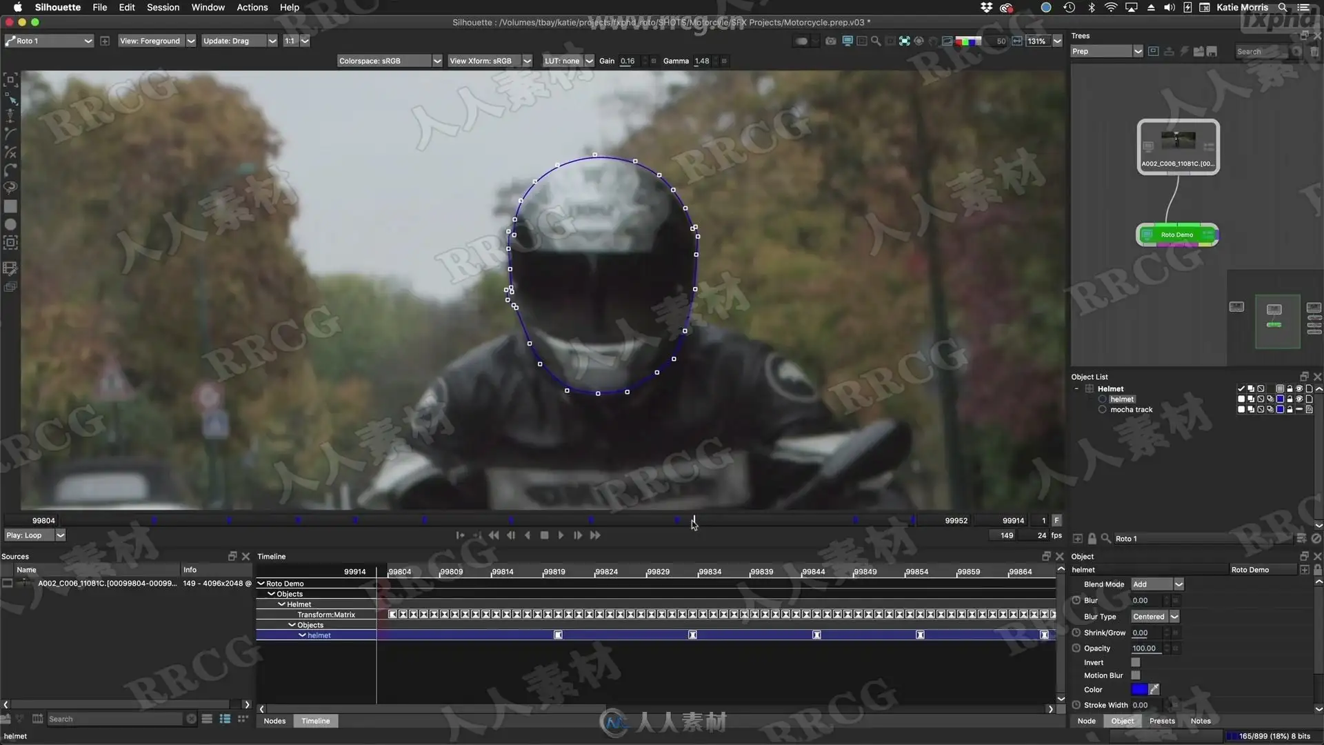 One will learn Silhouette, the fundamentals of all the spline types, rotoscoping methodologies including shape creation and keyframing, multiple tracking methods, how to successfully roto a shot from beginning to end whether it be manual roto, roto with tracking assist, fully tracked roto, and/or using the Mocha Pro plug-in to give your skills an extra boost, including the Lens Undistort/Distort workflow. And one will also master using Open Shapes, create hair roto and how to personalize your workflow with custom Python scripts.