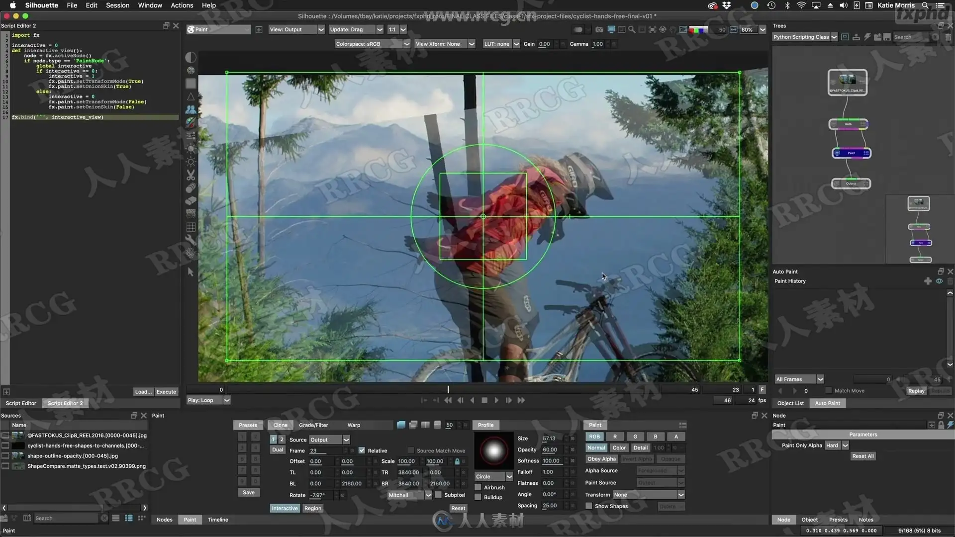 The course begins with an in-depth roto foundations class, then transitions to an extensive tour of the Silhouette interface and shot approach tips. Then the course jumps right into the remaining five shots with increasingly more complexities. This course has it covered whether you are just starting out, an experienced roto artist or an artist from another discipline. There is a focus on detail in relation to manual roto and automated roto processes.