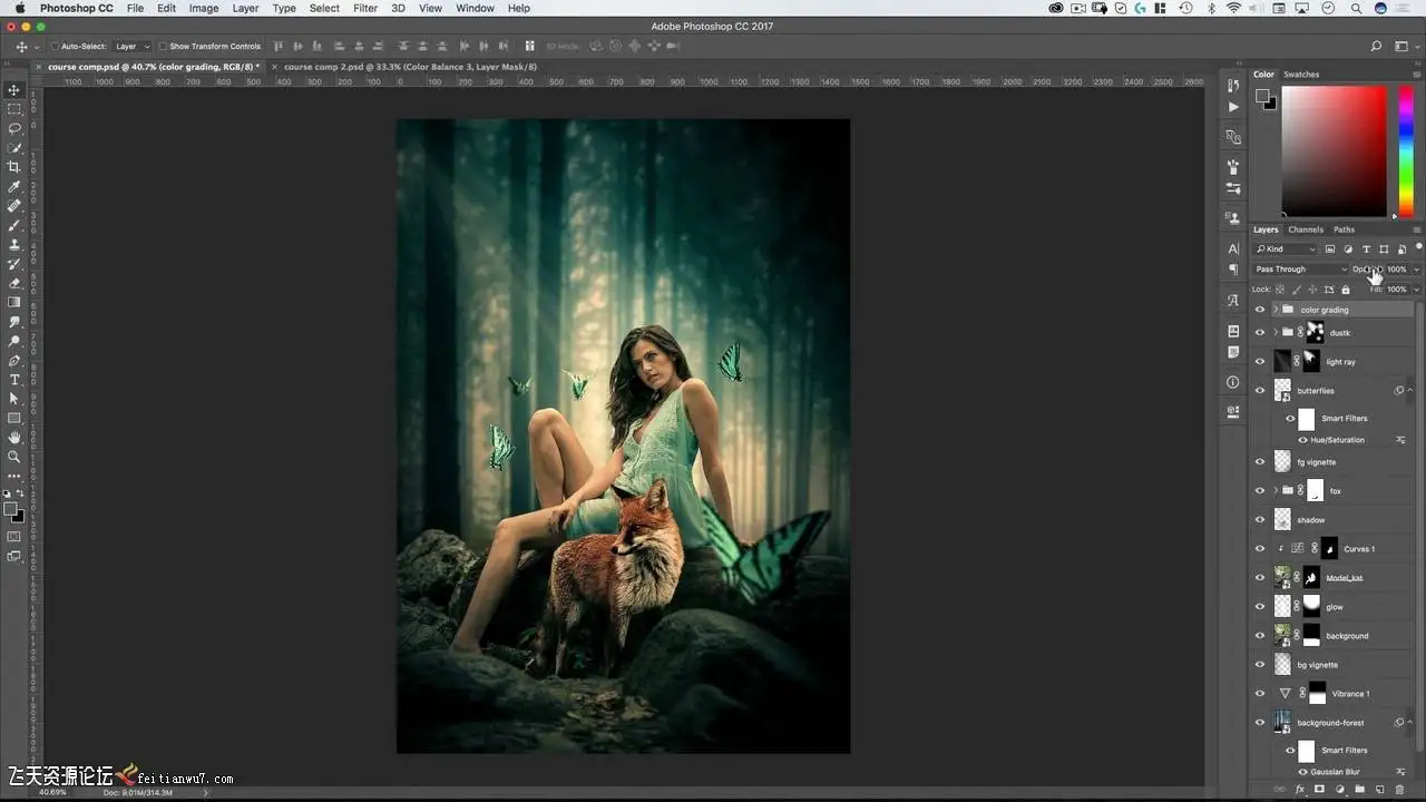 加入创意总监和Photoshop大师Rikard Rodin创作一个有狐狸的女士的艺术作品。 除了覆盖photoshop合成基础 - 快捷方式,选择,遮蔽,变换 - 这里还有独特的技术来创建光线,灰尘和颜色分级。