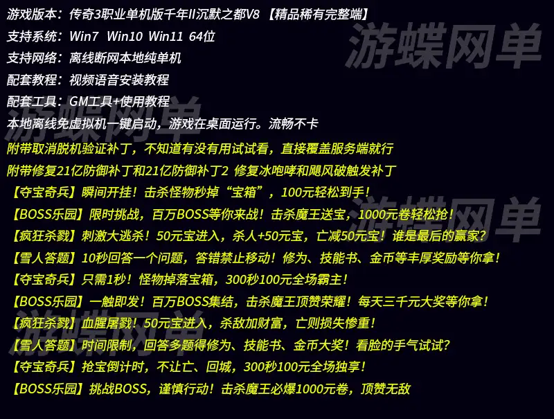 游戏版本:传奇3职业单机版千年I沉默之都V8【精品稀有完整端】