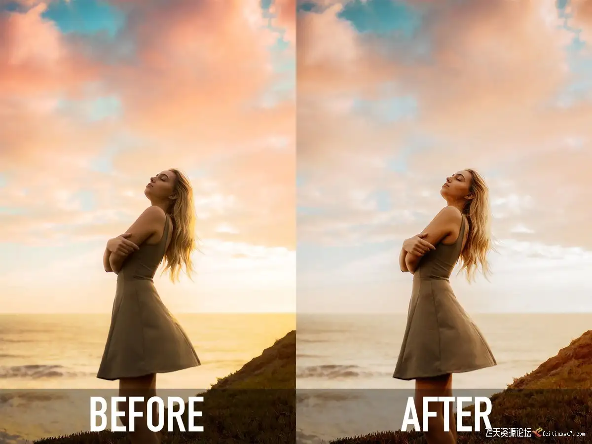 夏季旅拍质感橙色电脑+手机修图LR预设Lightroom Preset Blue Lagoon