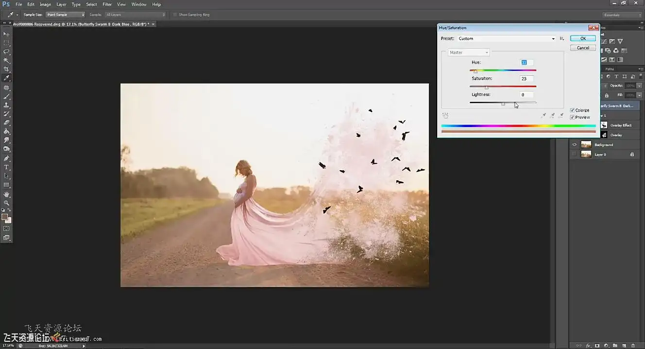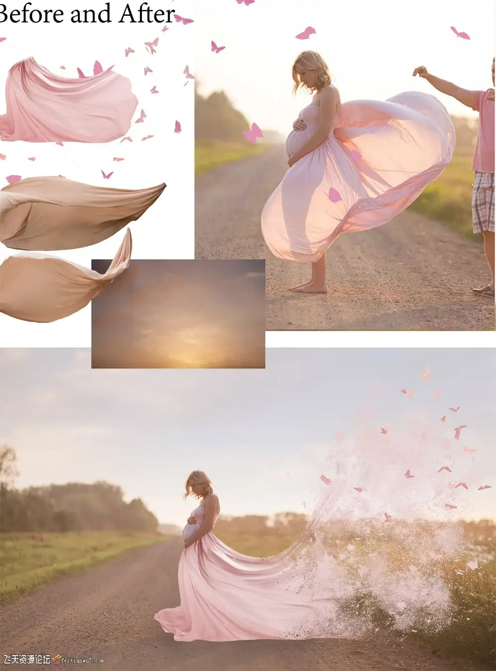 [Photoshop] 流行影楼写真婚纱蝴蝶群拖尾飘纱裙摆修饰教程+素材