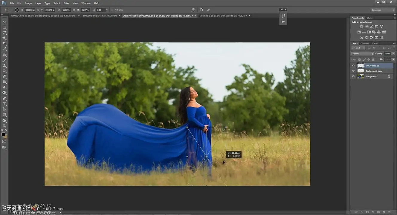 流行影楼写真婚纱蝴蝶群拖尾飘纱裙摆修饰教程+素材 ...