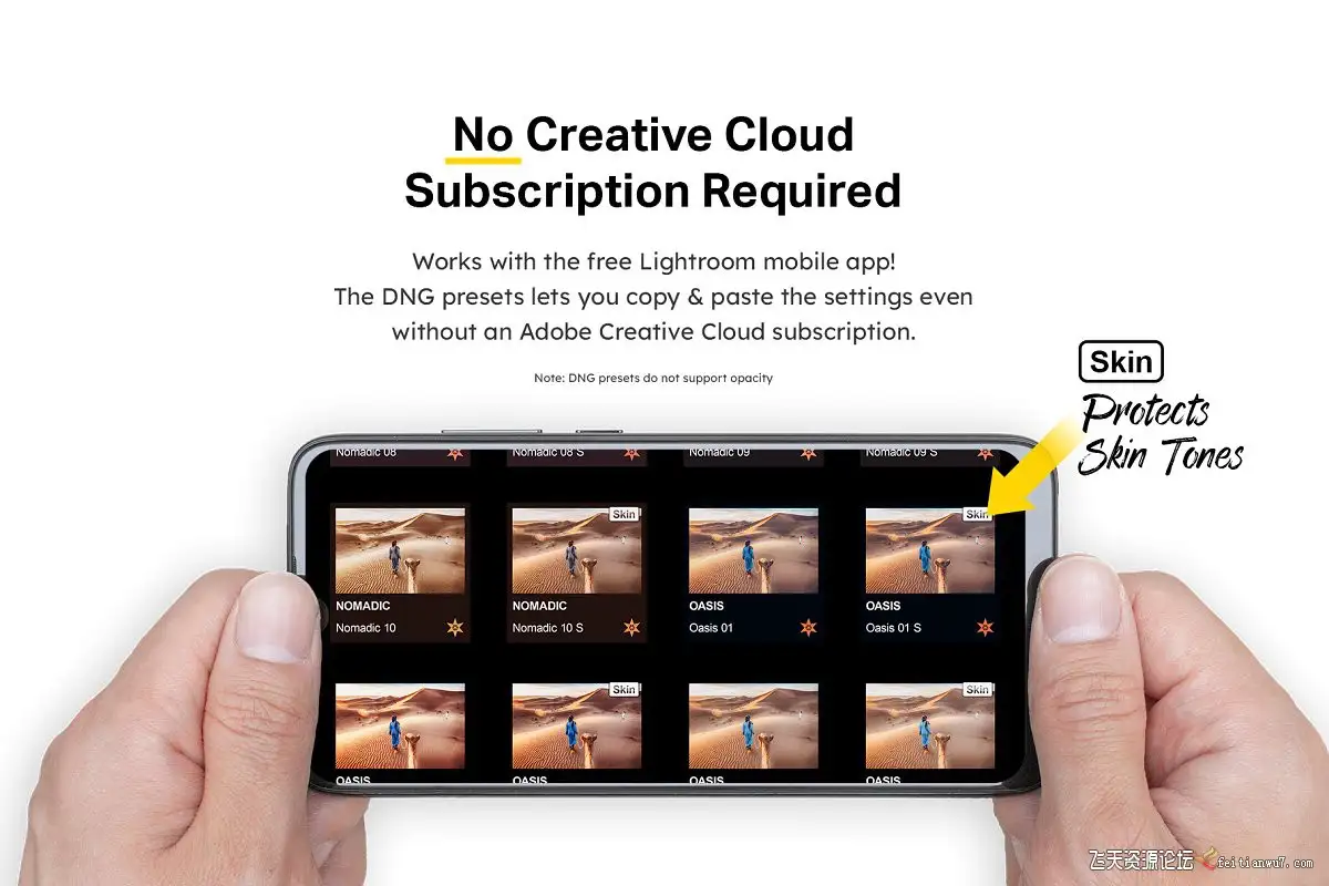 无需Creative Cloud订阅即可使用DNG预设。不支持预设同步和不透明度。