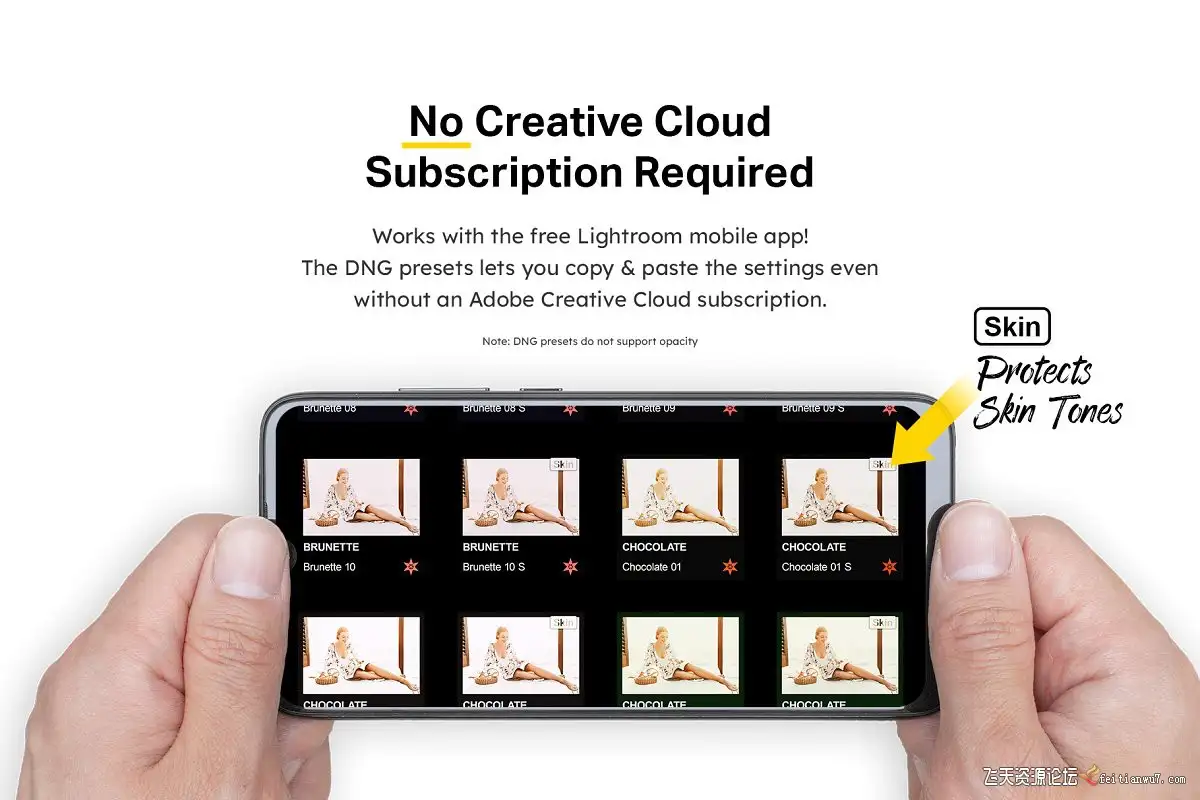 无需Creative Cloud订阅即可使用DNG预设。不支持预设同步和不透明度。