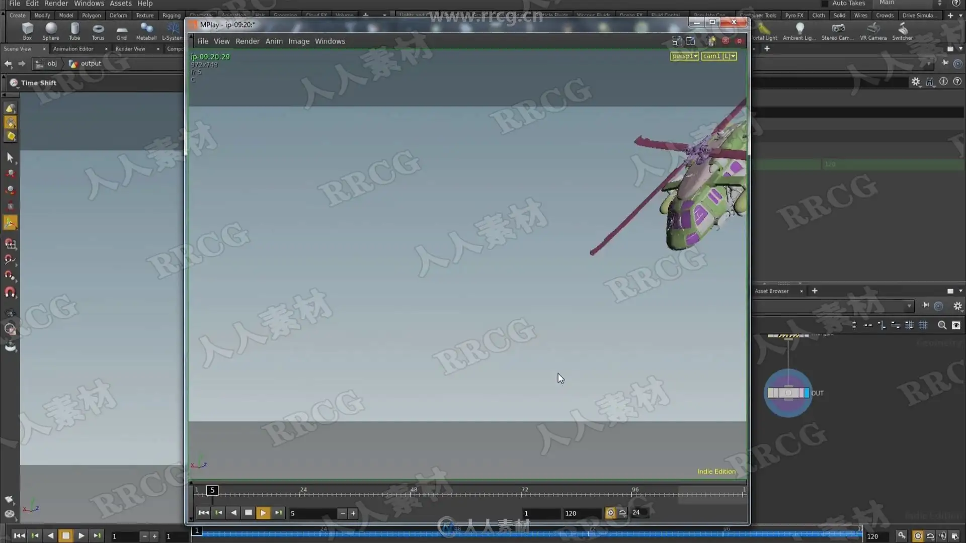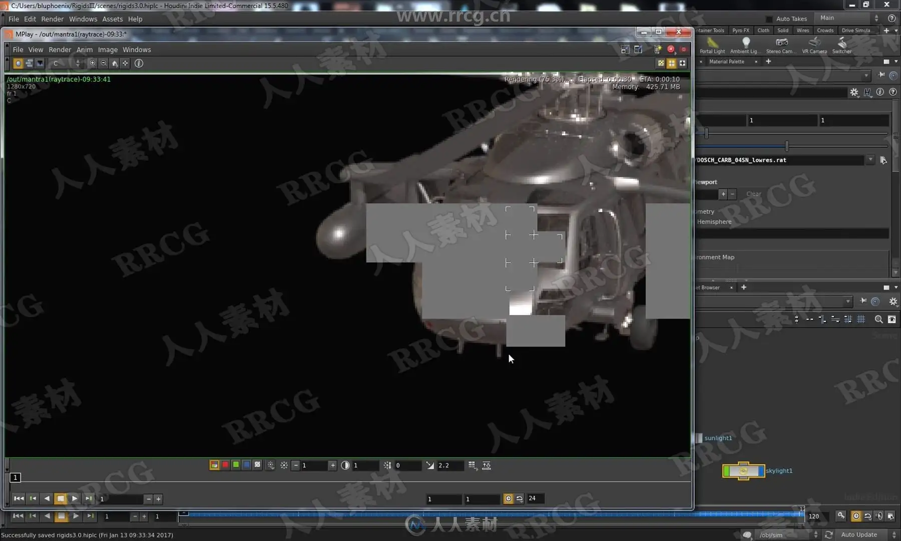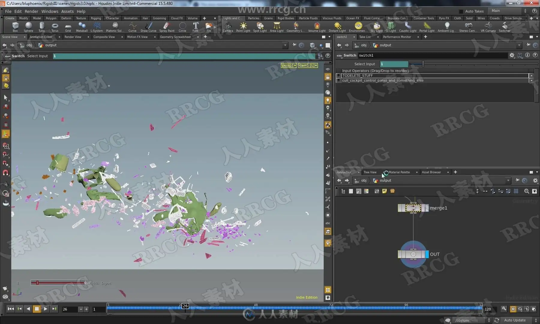 In Rigids III we will tackle the complex task of destroying a vehicle! Included with the lesson is a high resolution helicopter that we will smash into the ground. We talk extensively about the mysterious “hard” and “cone twist” constraints, as well as strategies to combine them with the “glue” constraint in order to achieve the looks of different physical materials under stress. Perhaps most importantly, an efficient workflow is described in order to keep this complexity manageable as well as art directable. As a bonus, we will also render our final work in Mantra as well as export to the Alembic file format in order to read into other packages if we desire.