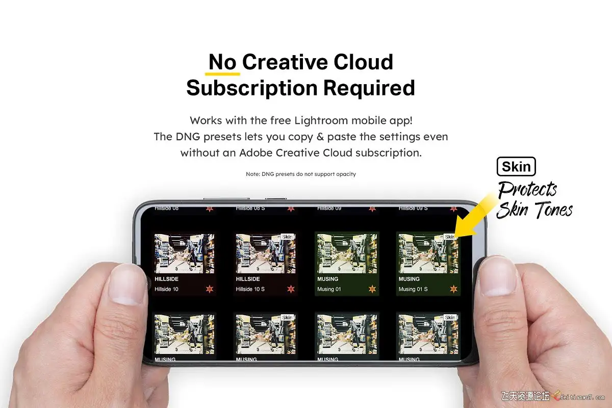 TRUE Lightroom移动支持意味着您将同时获得DNG预设和本机移动预设。 DNG预设可以与Lightroom的免费版本一起使用。如果您具有付费版本/ Creative Cloud订阅,请使用本机预设解锁不透明度支持并自动同步到手机。