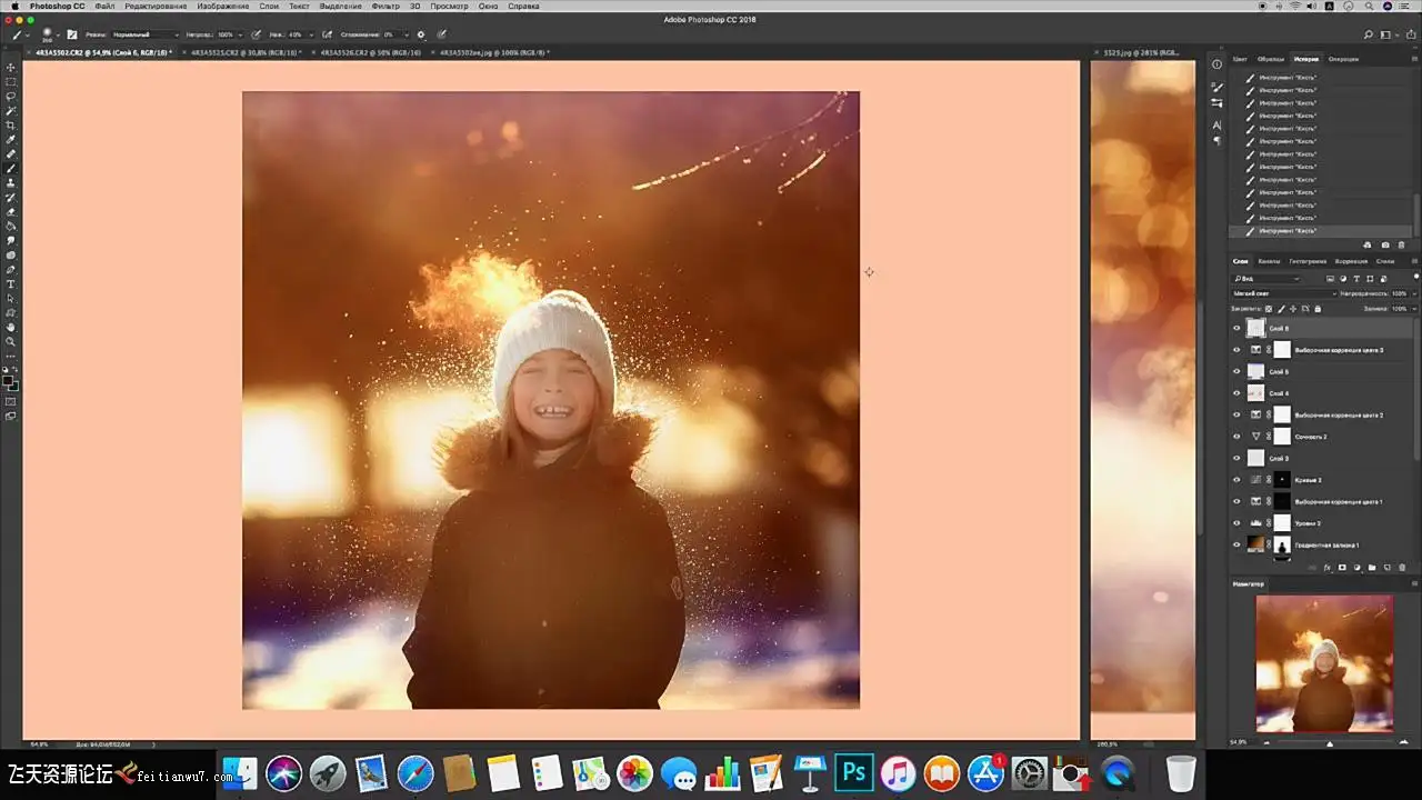 3.详细处理四张照片。我们添加太阳,在细节上加上重点,调整肤色,正确地提高多汁性并增加色调。