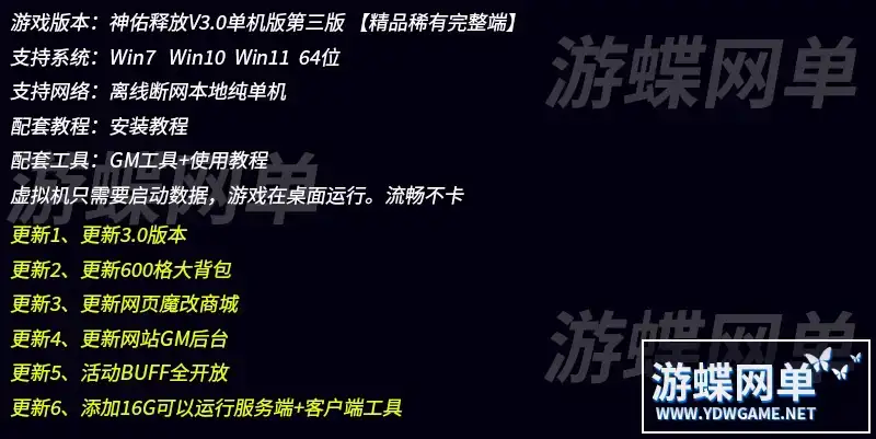 2024游蝶网单神佑释放V3.0版第三版VM一键单机端GM命令全物品ID