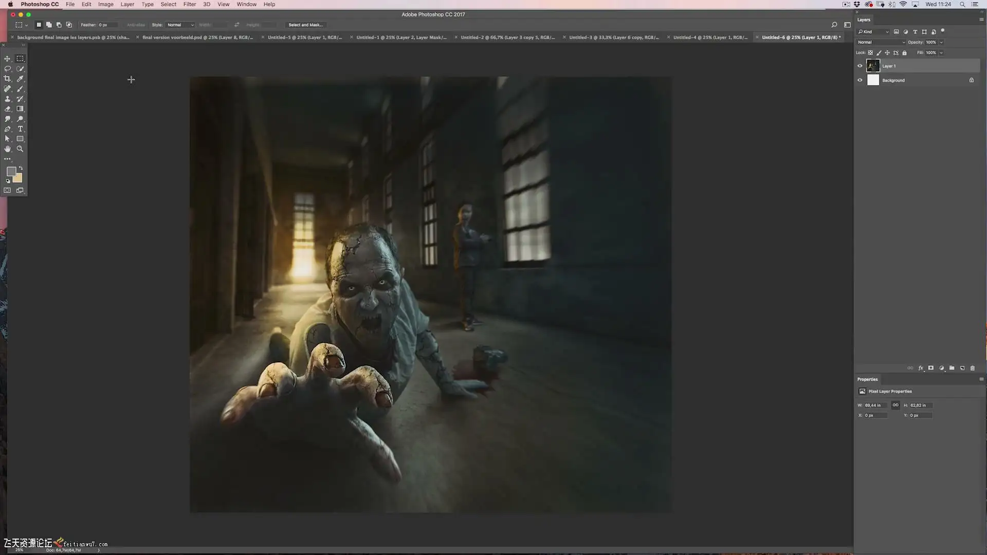 纹理在复合材料/数字处理图像中被大量使用。纹理可用于为图像提供更逼真的感觉。你可以为角色或衣服添加污垢,为场景添加烟雾,在背景中添加碎片等等。在这个视频教程中,我们将用它来创造一个幽灵般的荒凉之地,让我变成一个更令人毛骨悚然的生物,没有使用化妆师;)