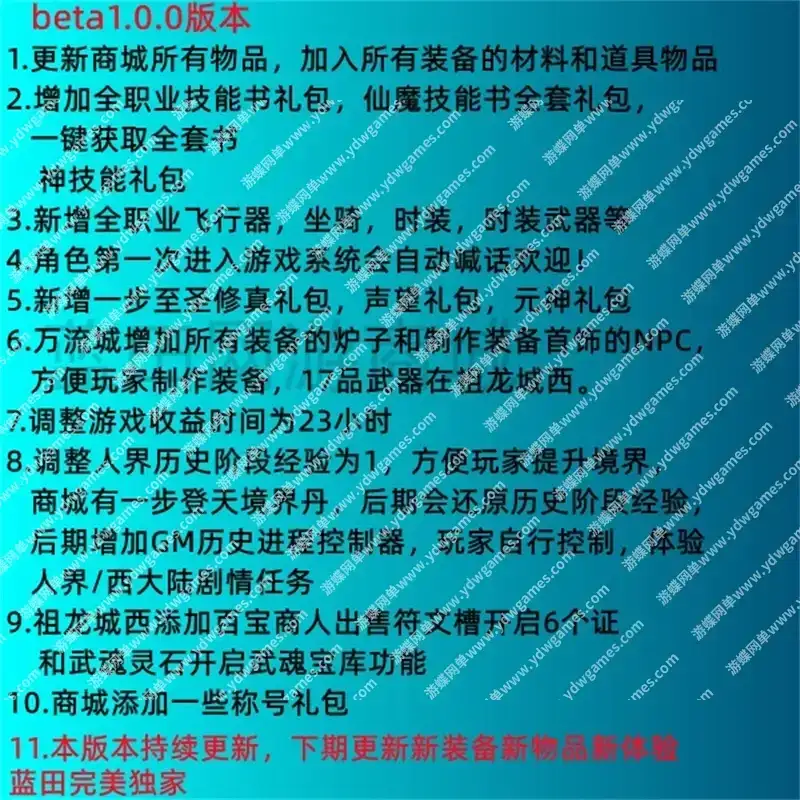 温馨提示:淘宝上便宜的都是残端,问题多(5分钟掉线,退避,副本无怪,npc残缺,装备无法生产)后台残缺,无GM工具,无售后,对游戏不懂,有问题无法回答解决。一分钱一分货,这个道理都懂的,才有完美的售后服务。