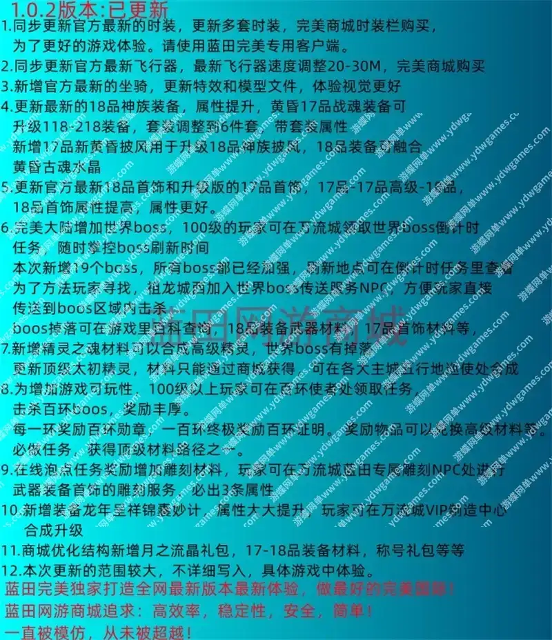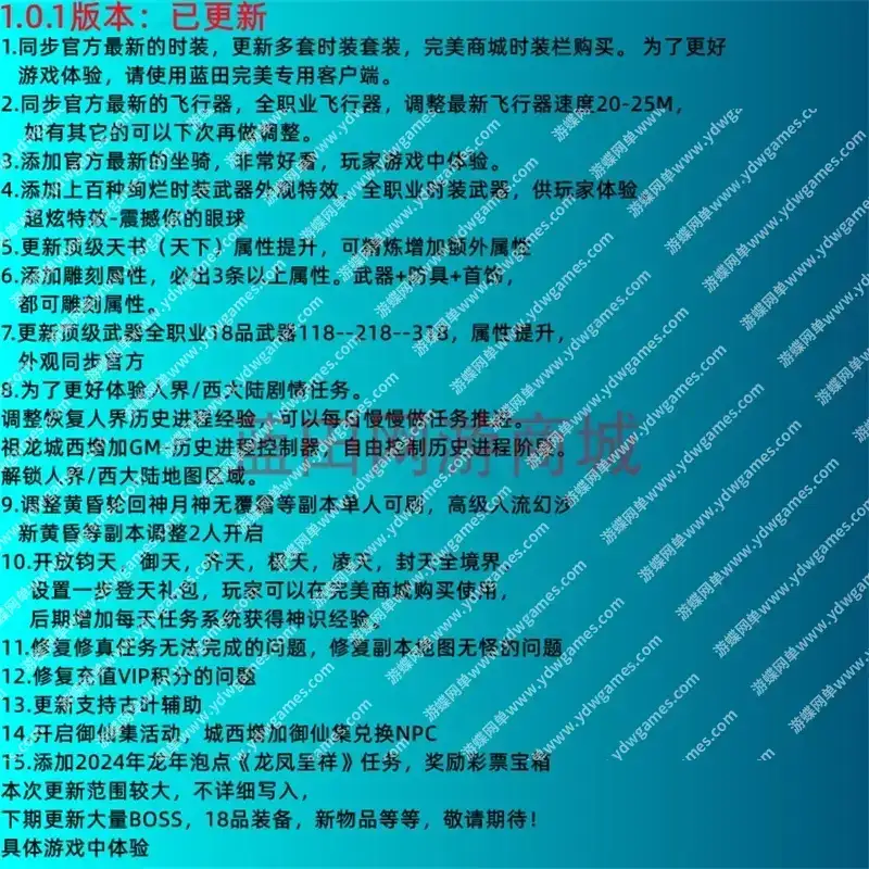 同步官方14职业,新时装,新时装武器,新坐骑,新观赏宠,新飞行器,请把客户端更新至3028以上!