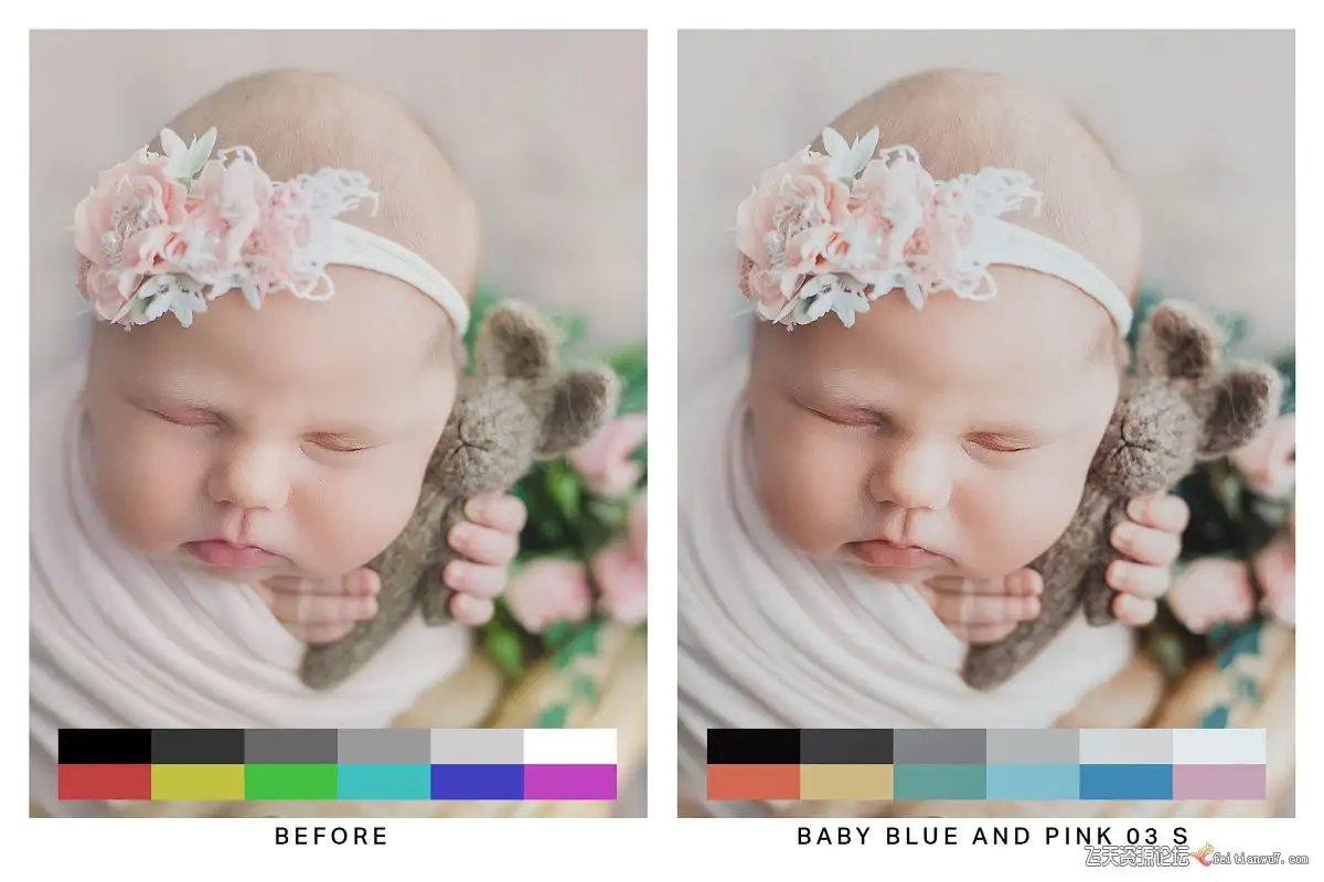 淡蓝色和粉红色(10种预设)-男孩或女孩,这种美丽的色彩组合可为新生儿和婴儿摄影创造奇迹。
