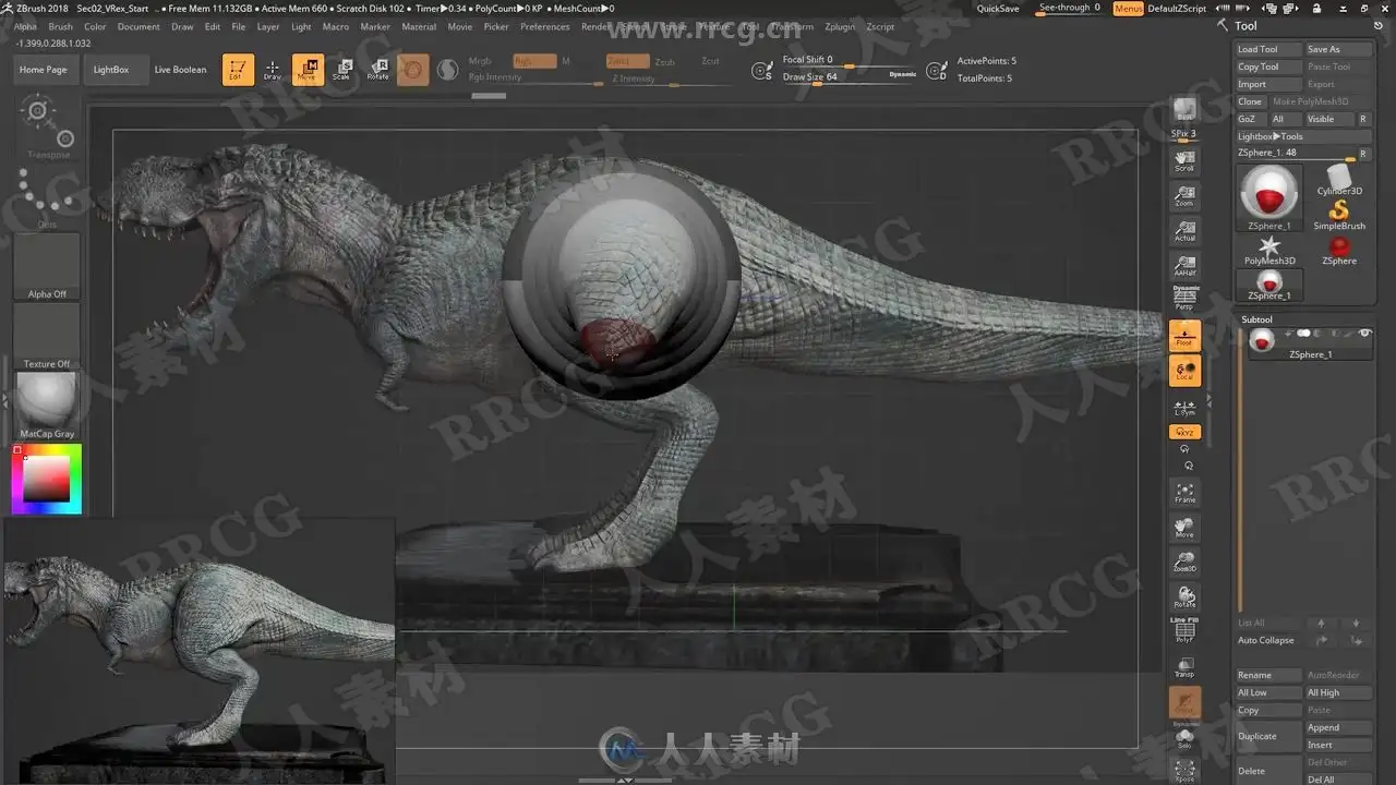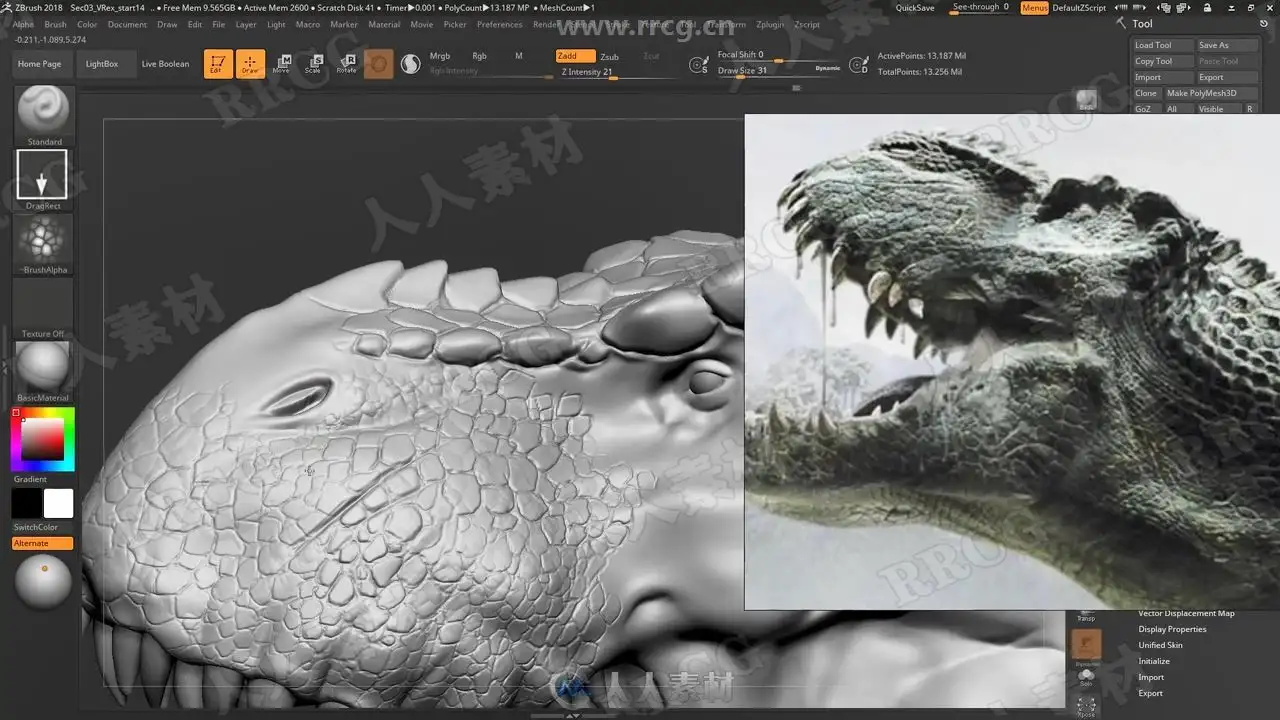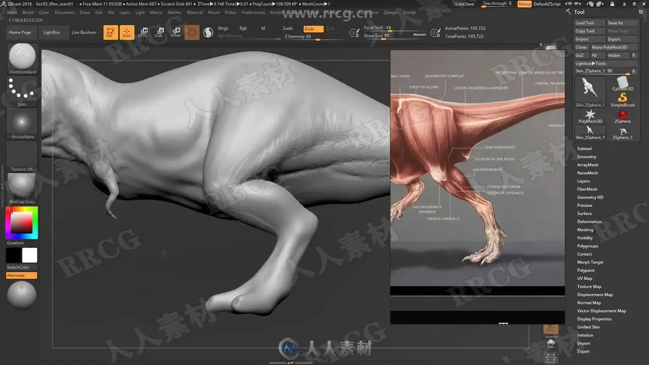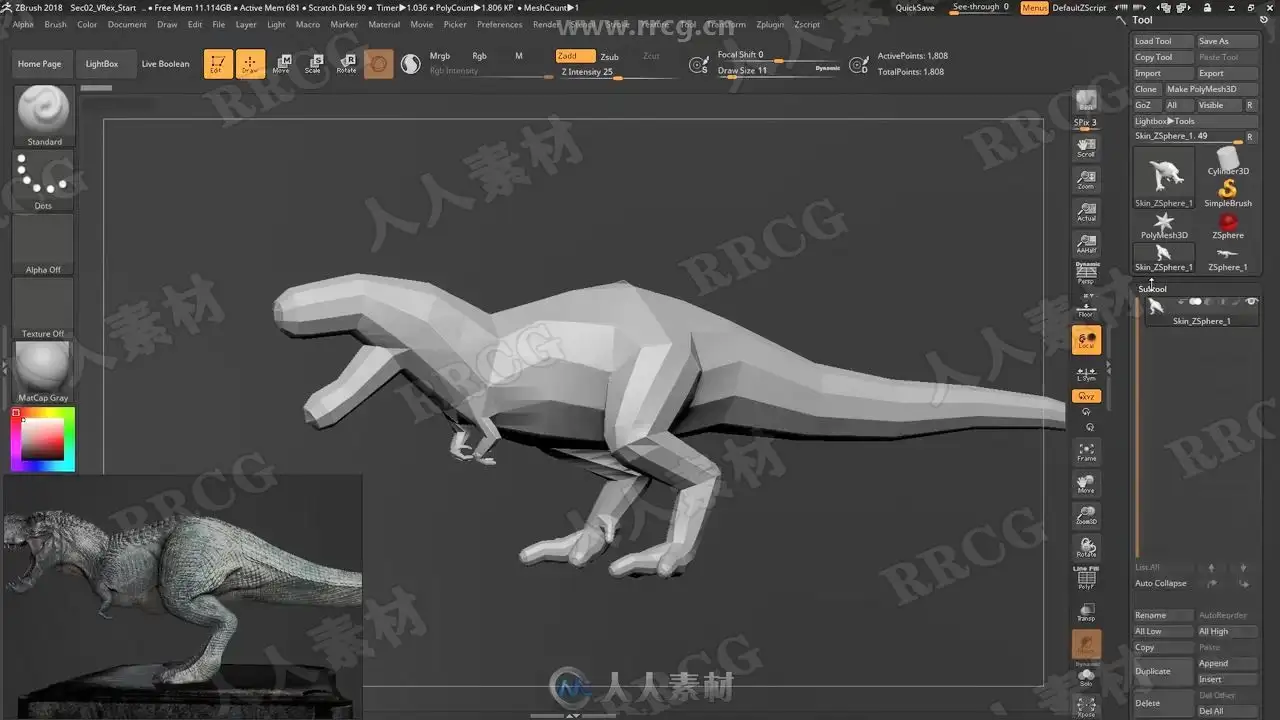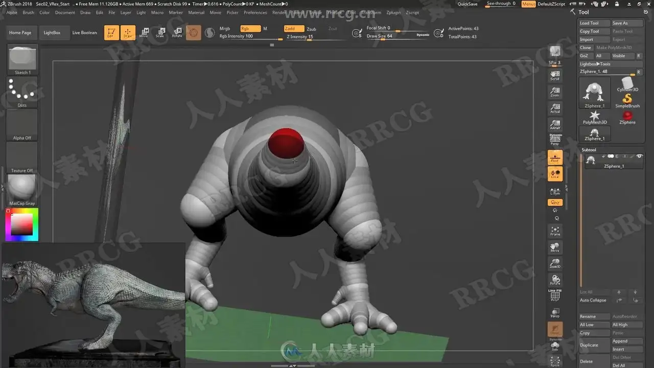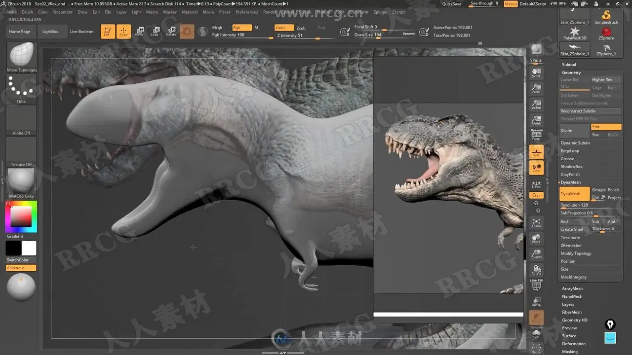 本教程是关于Zbrush恐龙模型雕刻视频教程,时长:4小时22分钟,大小:1.6 GB,MP4高清视频格式,教程使用软件:Zbrush,附源文件,共23个章节,语言:英语。