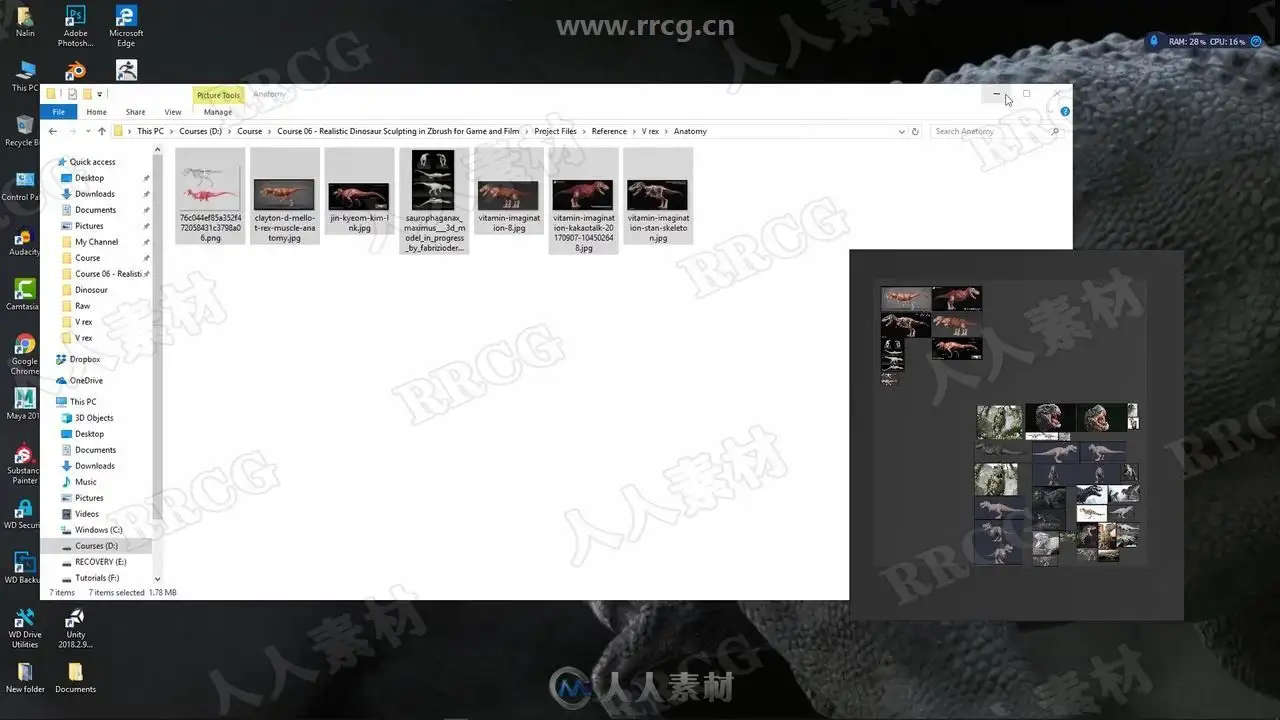 This tutorial is about ZBrush dinosaur model carving video tutorial, duration: 4 hours and 22 minutes, size: 1.6 GB, MP4 HD video format, course software: ZBrush, with source files, a total of 23 chapters, language: English.