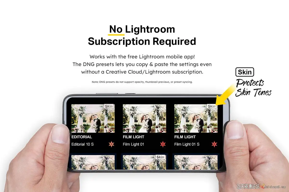 无需Creative Cloud订阅即可使用DNG预设。不支持预设同步和不透明度。