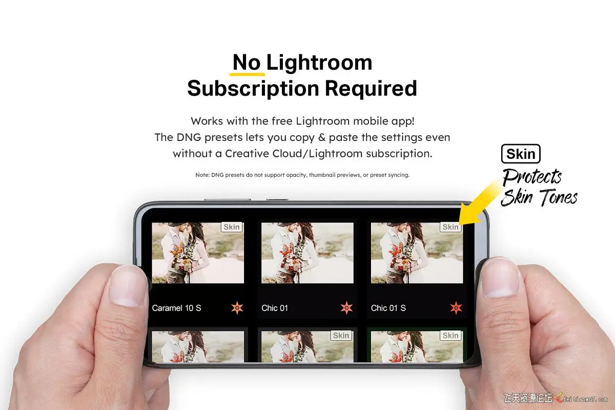 无需Creative Cloud订阅即可使用DNG预设。不支持预设同步和不透明度。