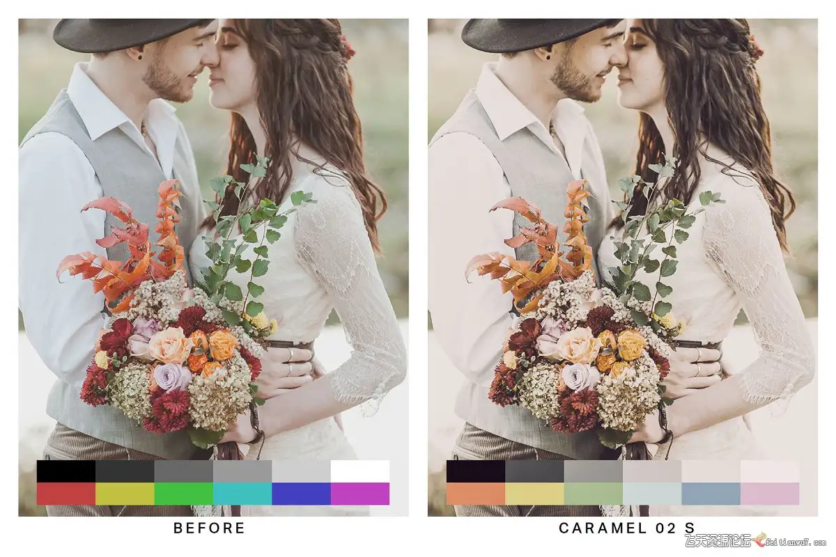 焦糖色(10个预设)-这些预设提供具有复古色彩的对比胶片色调。