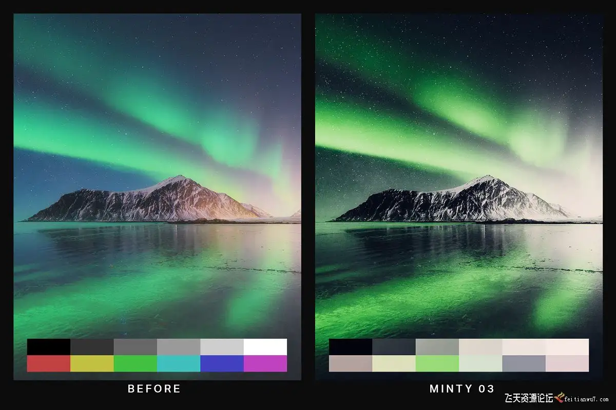 Minty(10个预设)-绿色预设也非常适合极光照片。