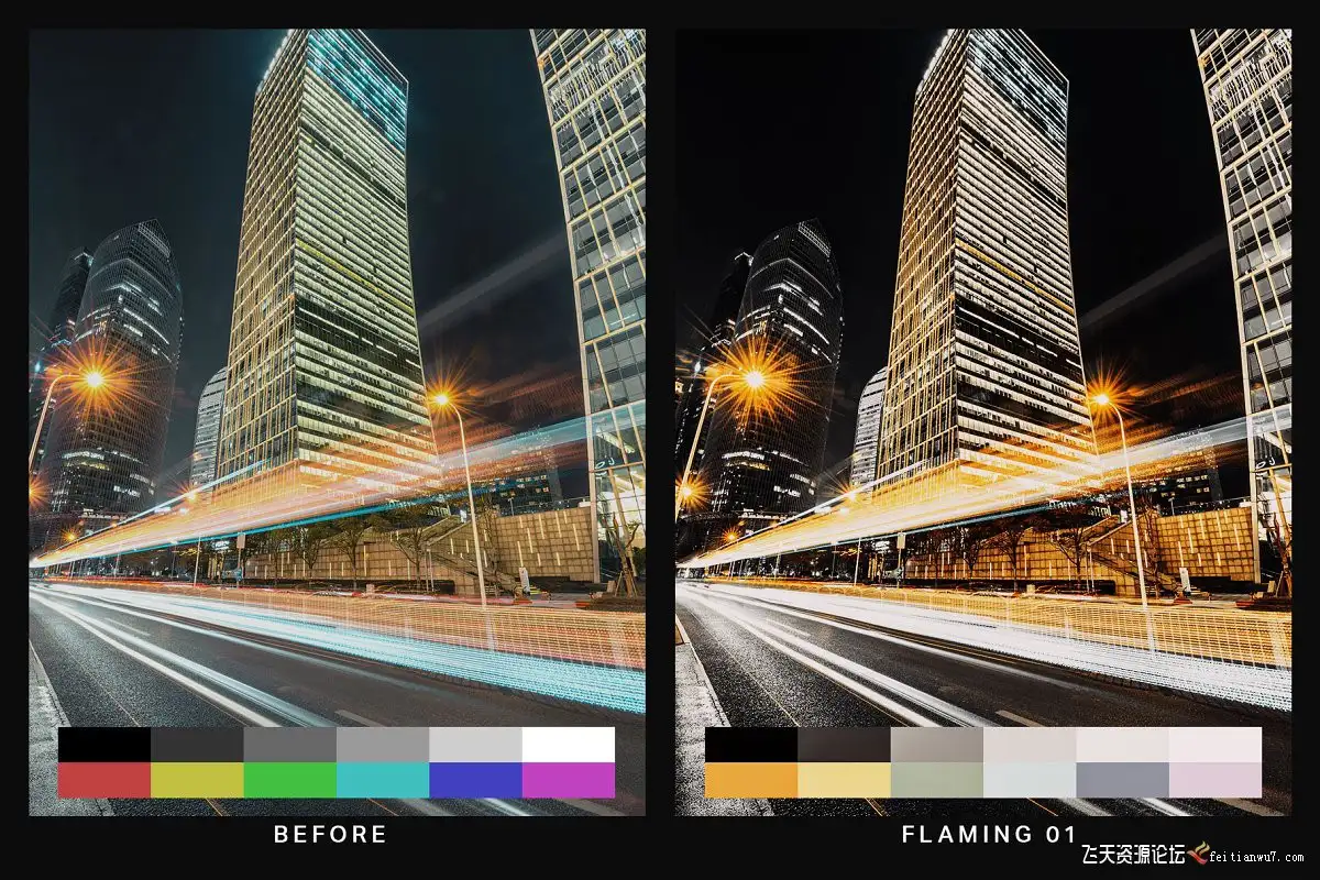 火焰状(10个预设)-火红色和橙色的Lightroom预设使夜景照片具有火焰状。