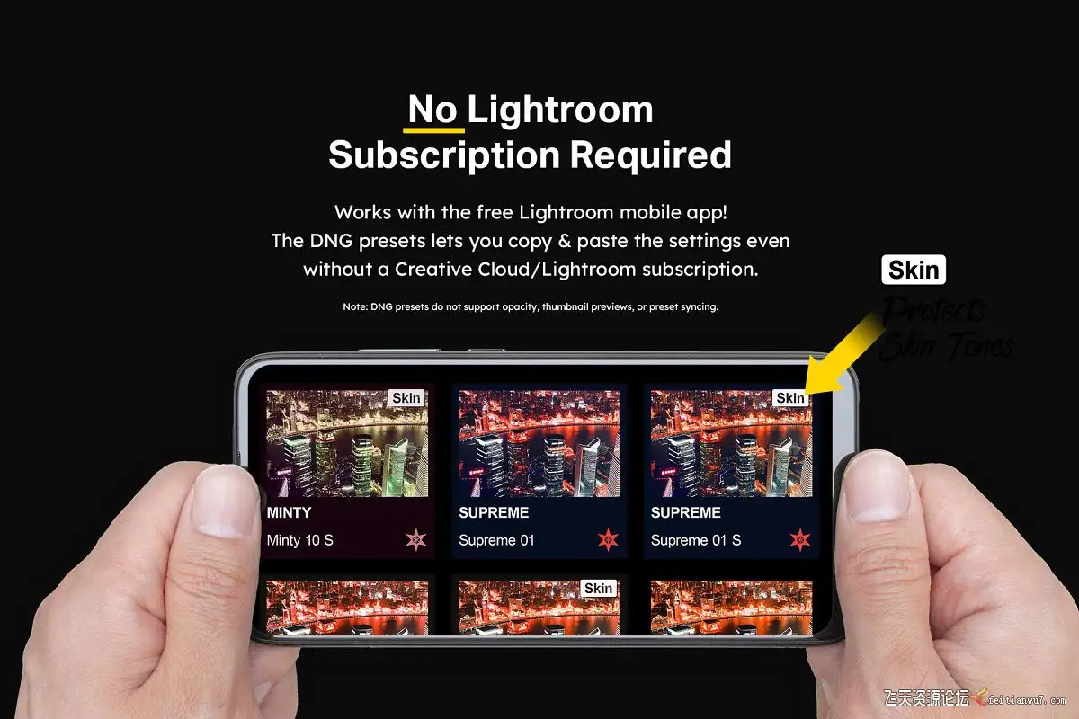 无需Creative Cloud订阅即可使用DNG预设。不支持预设同步和不透明度。