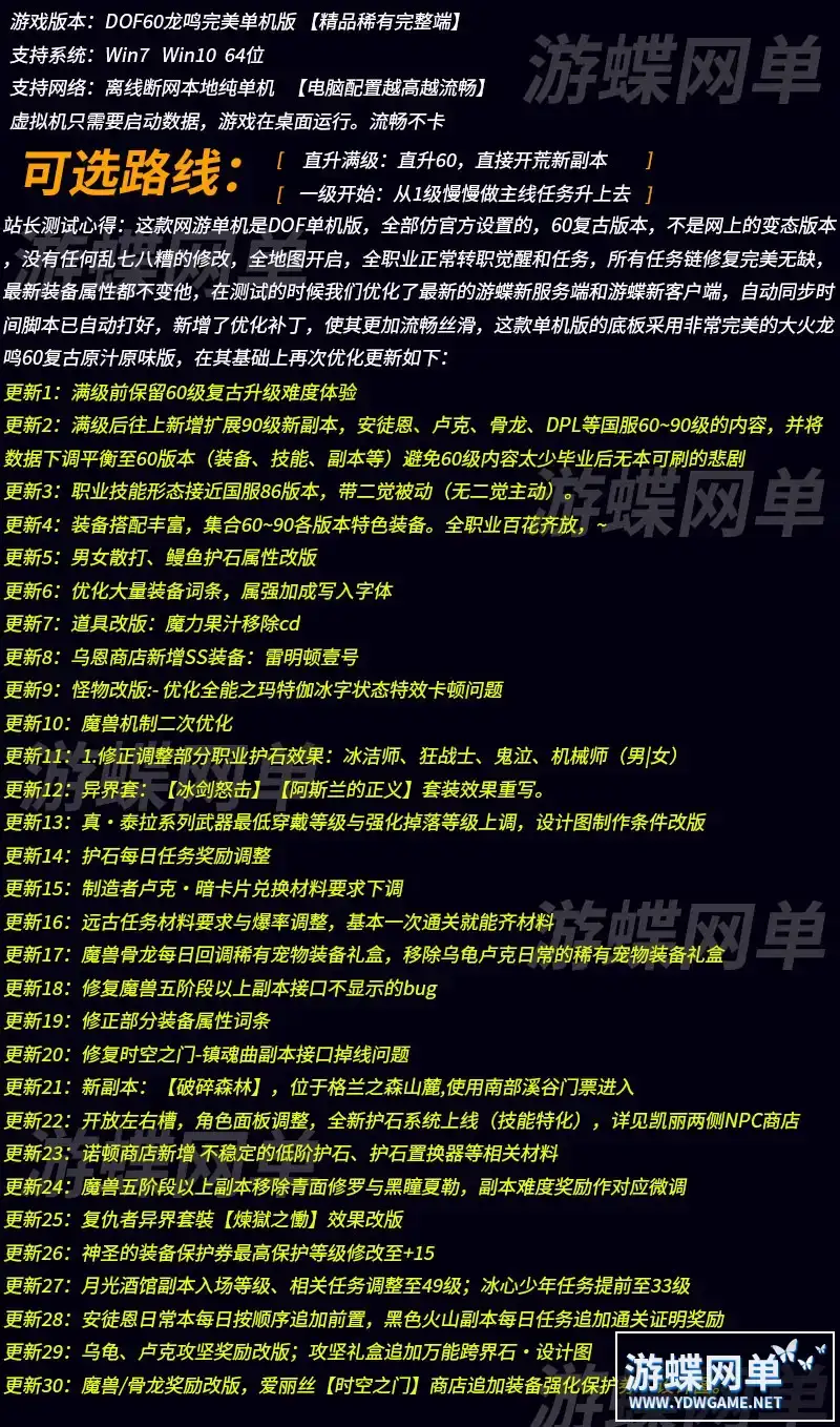 DOF单机版60龙鸣复古怀旧原汁原味保留60级复古升级难度90扩展