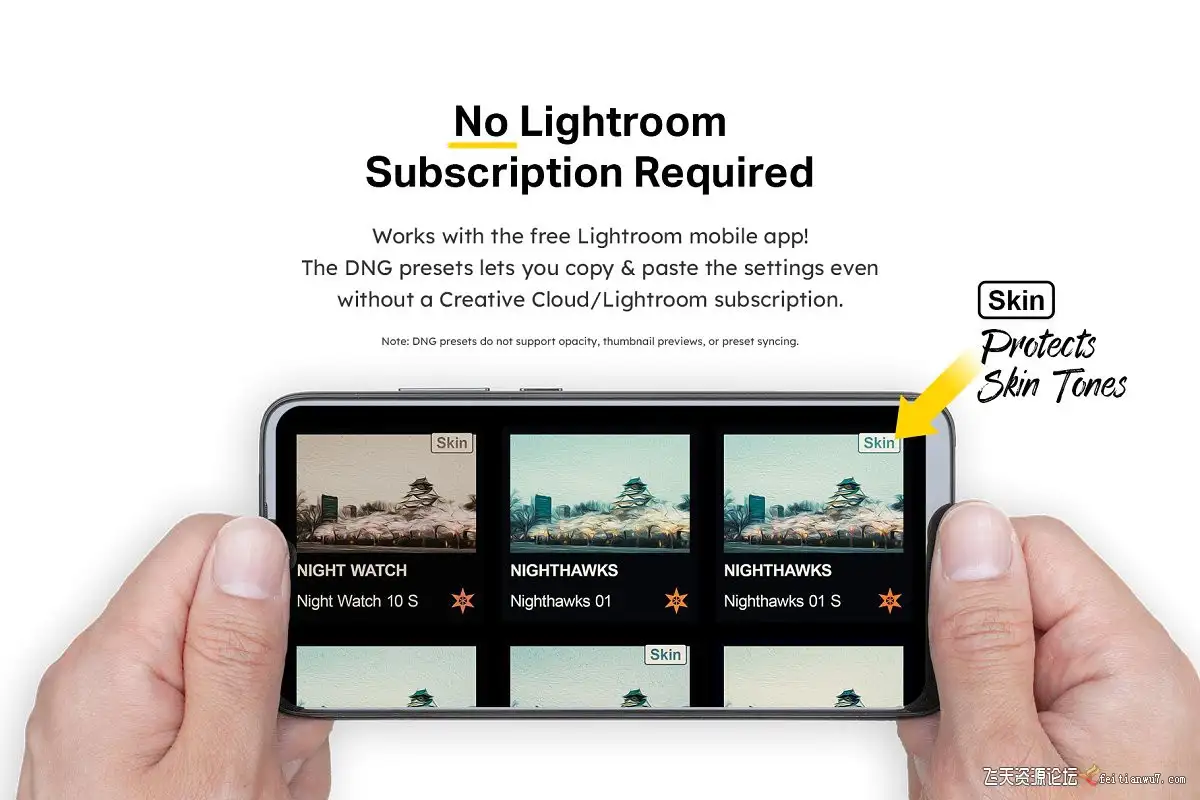 无需Creative Cloud订阅即可使用DNG预设。不支持预设同步和不透明度。