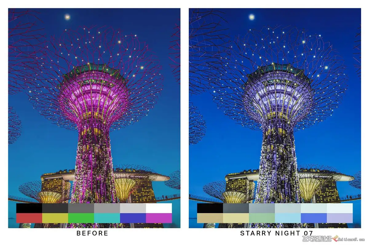 繁星点点的夜晚(10个预设)-适用于暮光照片。对于浪漫的蓝色和金丝雀黄色外观,请使用这些预设,并搭配Vincent van Gogh的《星夜》画作中的颜色。