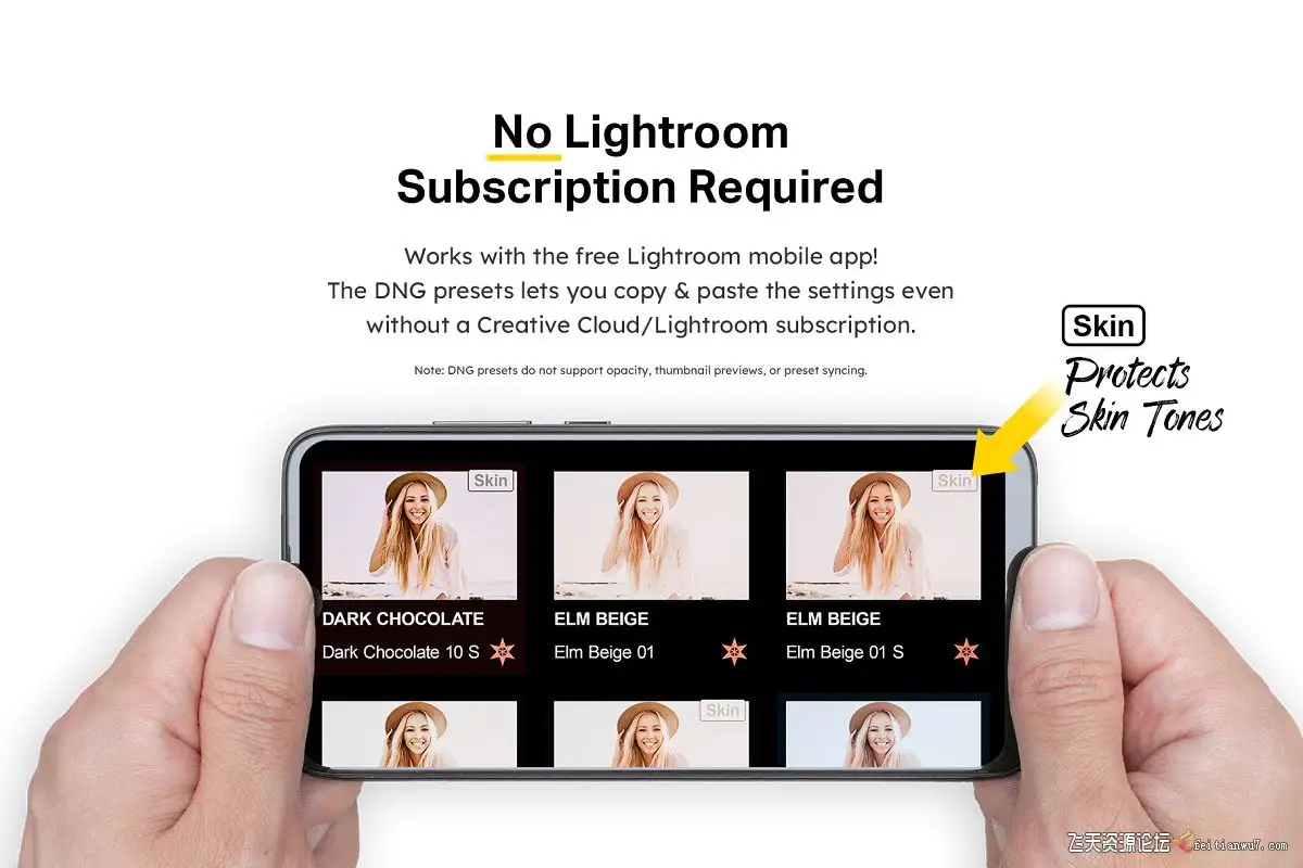 无需Creative Cloud订阅即可使用DNG预设。不支持预设同步和不透明度。