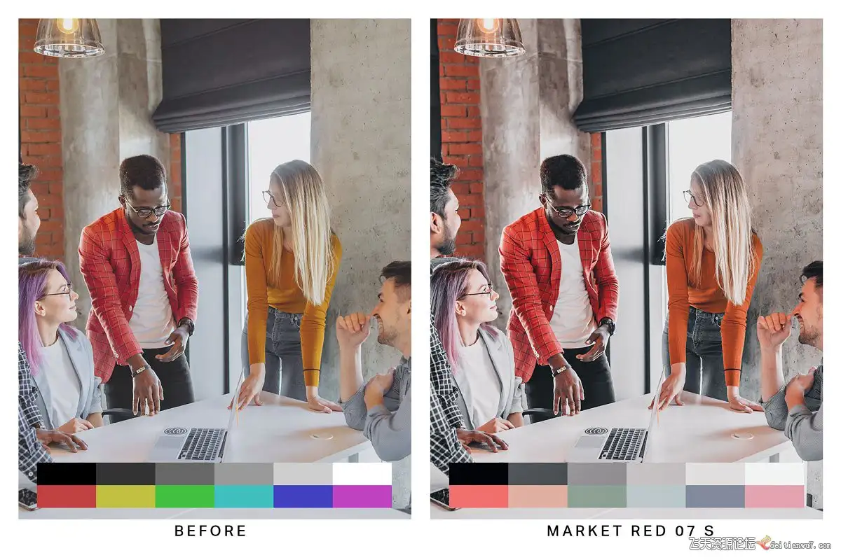 市场红色(10个预设)-红色和蓝色是最受企业欢迎的调色板之一,尤其是在房地产行业。这些Lightroom预设是使公司照片与公司颜色相匹配的好方法。
