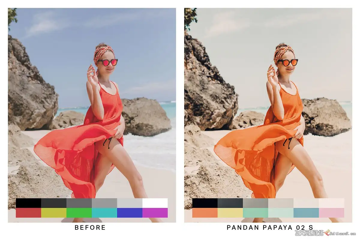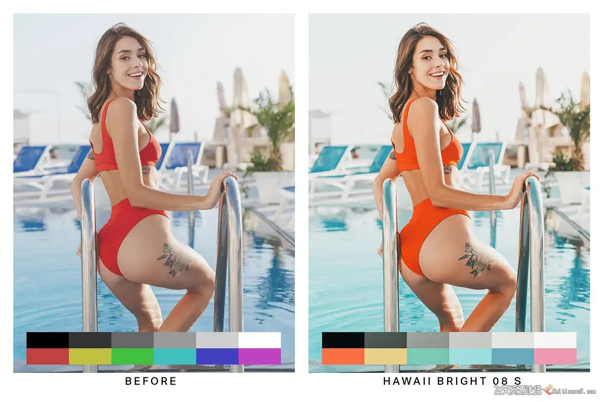 夏威夷明亮(10个预设)-通过这些明亮而充满活力的Lightroom预设使色彩流行。颜色朝着令人愉悦的木瓜红色,青色和粉红色转移。