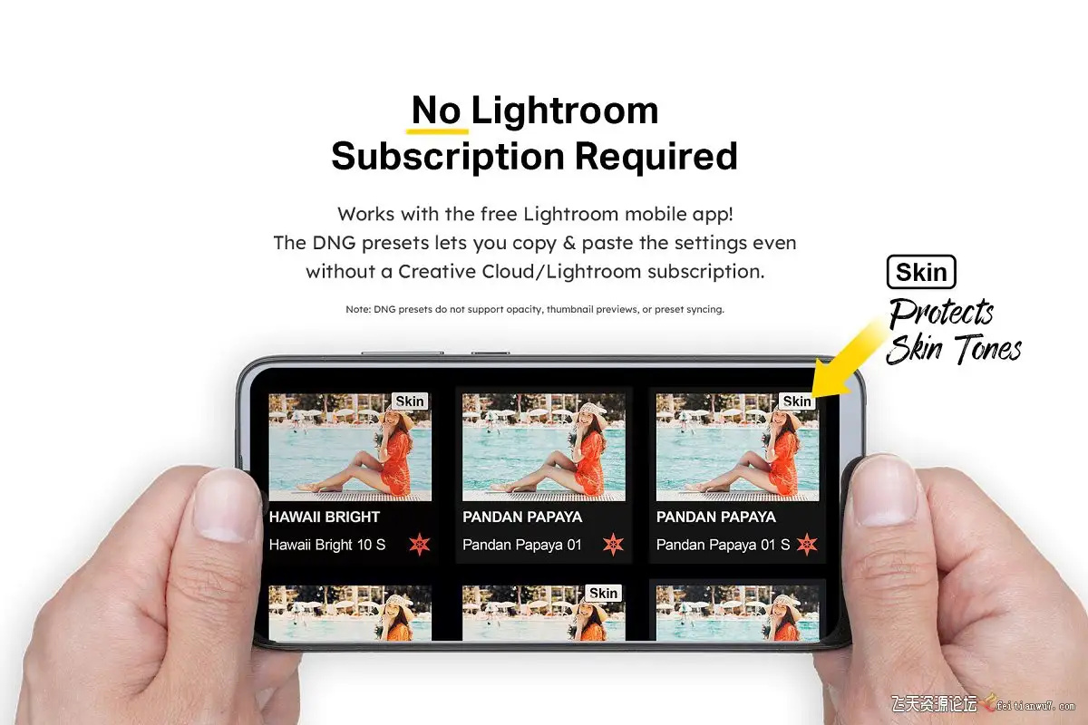 无需Creative Cloud订阅即可使用DNG预设。不支持预设同步和不透明度。