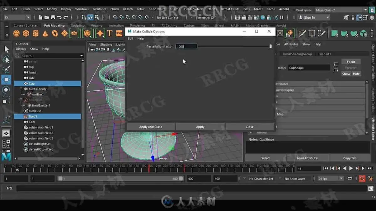 Lastly you are going to cache these nParticles and fluid in order to get a proper looking render
