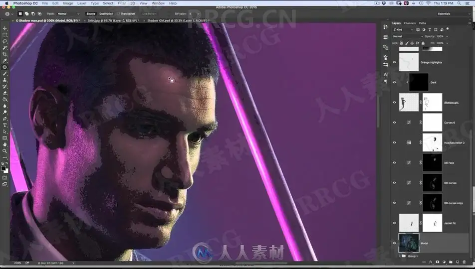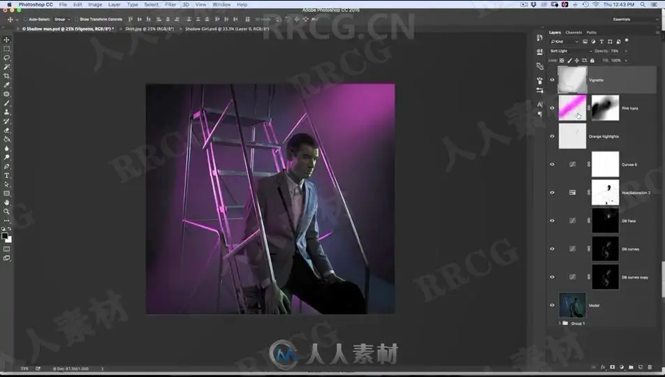In this high fashion tutorial you will learn all about advanced studio lighting and mood coloring. We take you behind the scenes and show you all about the different gels used, how to shoot shadows, how to work with studio strobes and light props correctly. Once in photoshop you will learn how to dodge and burn to preserve detail and draw attention to specific areas. Josh will teach you about advanced coloring, highlight painting and much more.