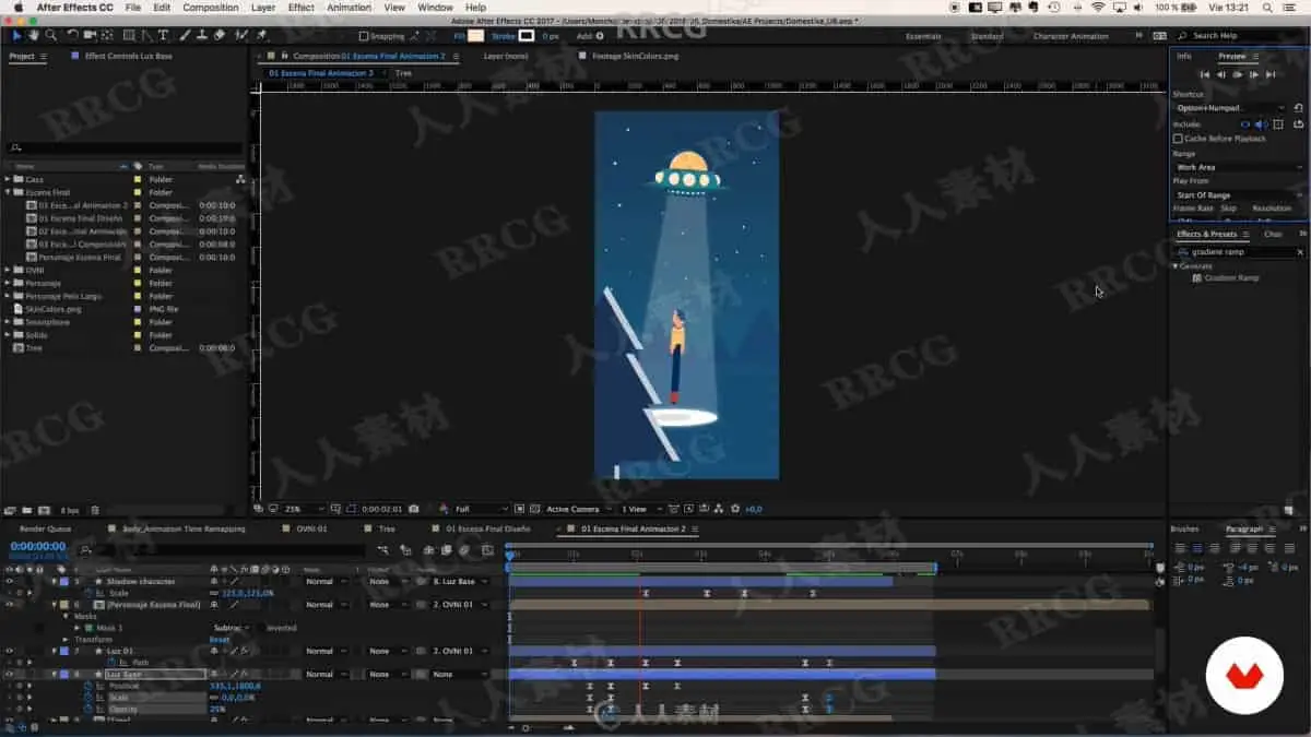本教程是关于AE有趣角色3D动画技术训练视频教程,时长:4小时30分,大小:1.5 GB,MP4高清视频格式,教程使用软件:After Effects,附源文件,作者:James Curran,共24个章节,语言:西班牙语。