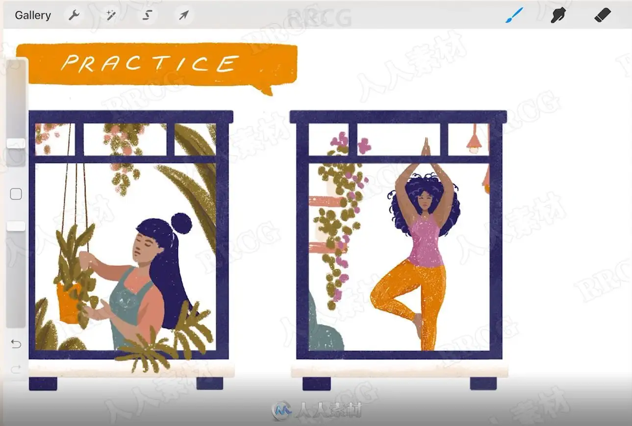 本教程是关于iPad中Procreate风格化角色设计插图视频教程,时长:2小时17 分,大小:2.7 GB,MP4高清视频格式,使用软件:Procreate,附源文件,作者:Iva Mikles,共14个章节,语言:英语。