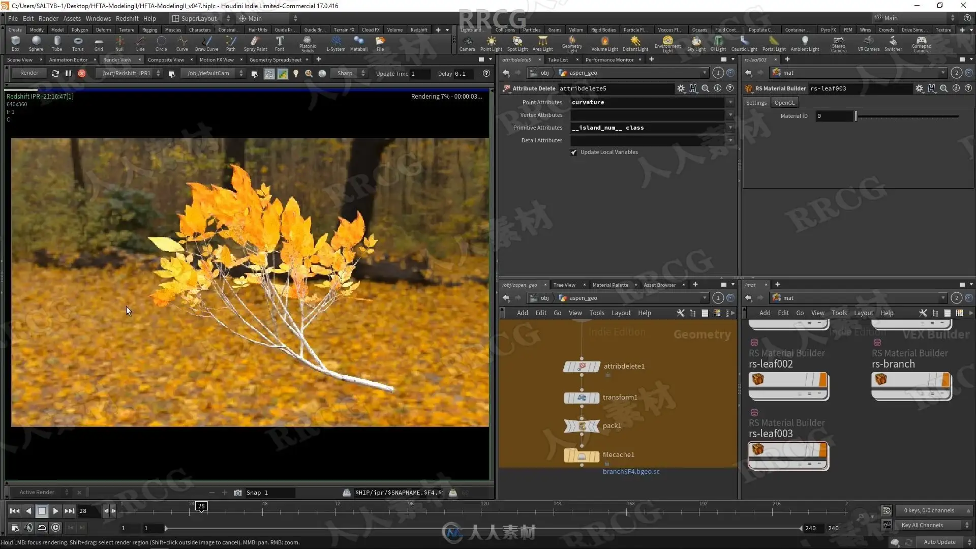 本教程是关于Houdini树叶秋叶群集建模与高效渲染技术视频教程,时长:3小时33分,大小:1.5 GB,MP4高清视频格式,教程使用软件:Houdini,共6个章节,作者:Tyler Bay,语言:英语。