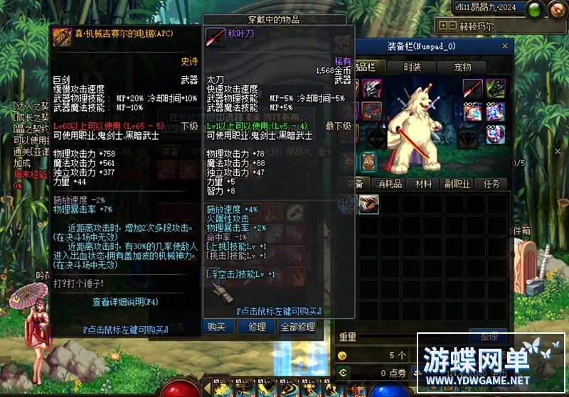 游蝶DOF单机仿官彩金第二版5W+时装单件影舞者忍者技能五合一完美版