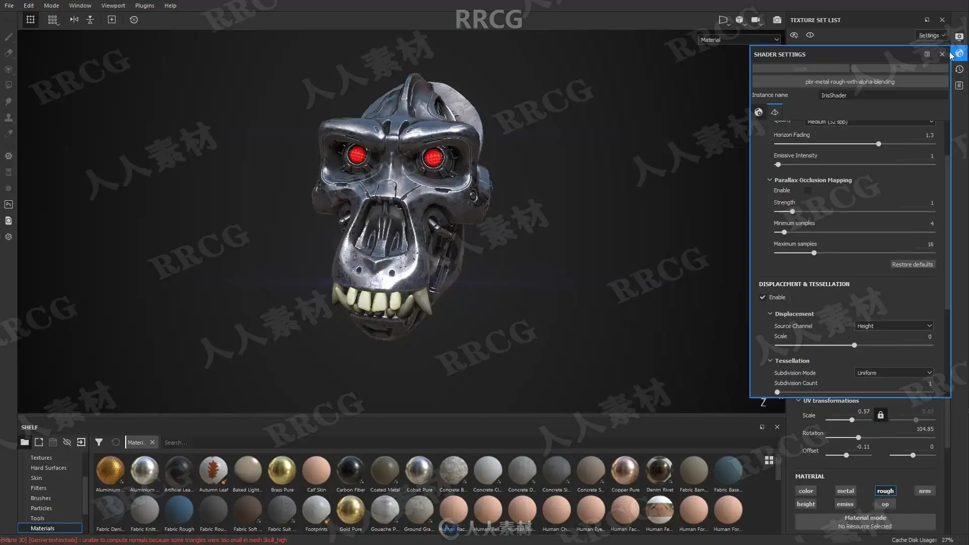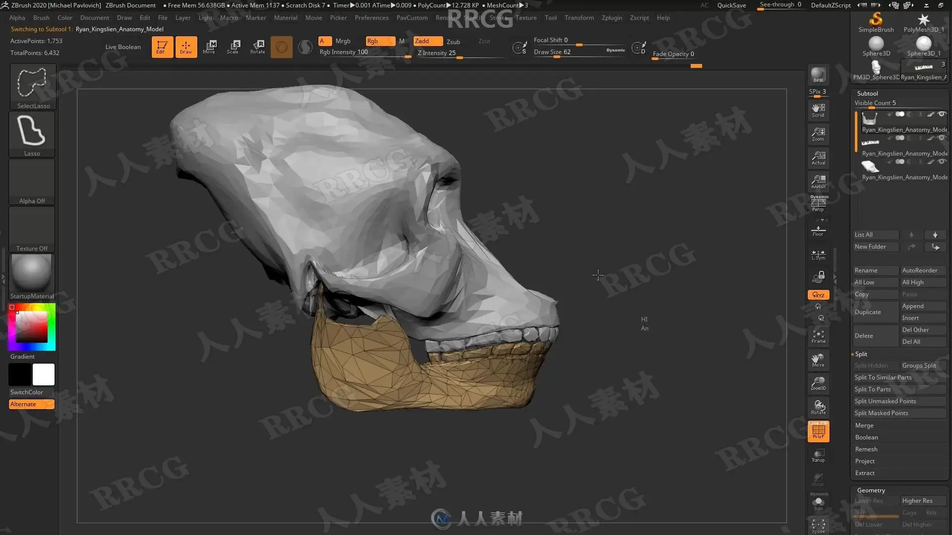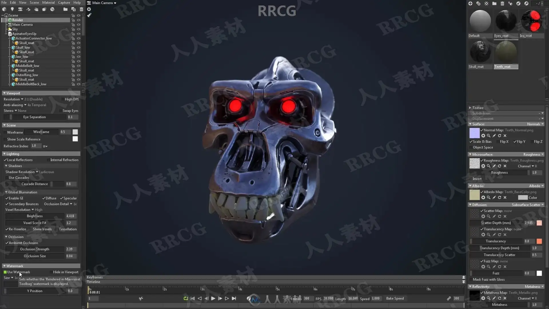 本教程是关于机械头骨数字雕刻建模完整制作流程视频教程,时长:13小时,大小:6.7 GB,MP4高清视频格式,教程使用软件:Zbrush,Maya,Substance Painter,Marmoset等,附源文件,作者:Michael Pavlovich,共113个章节,语言:俄语。