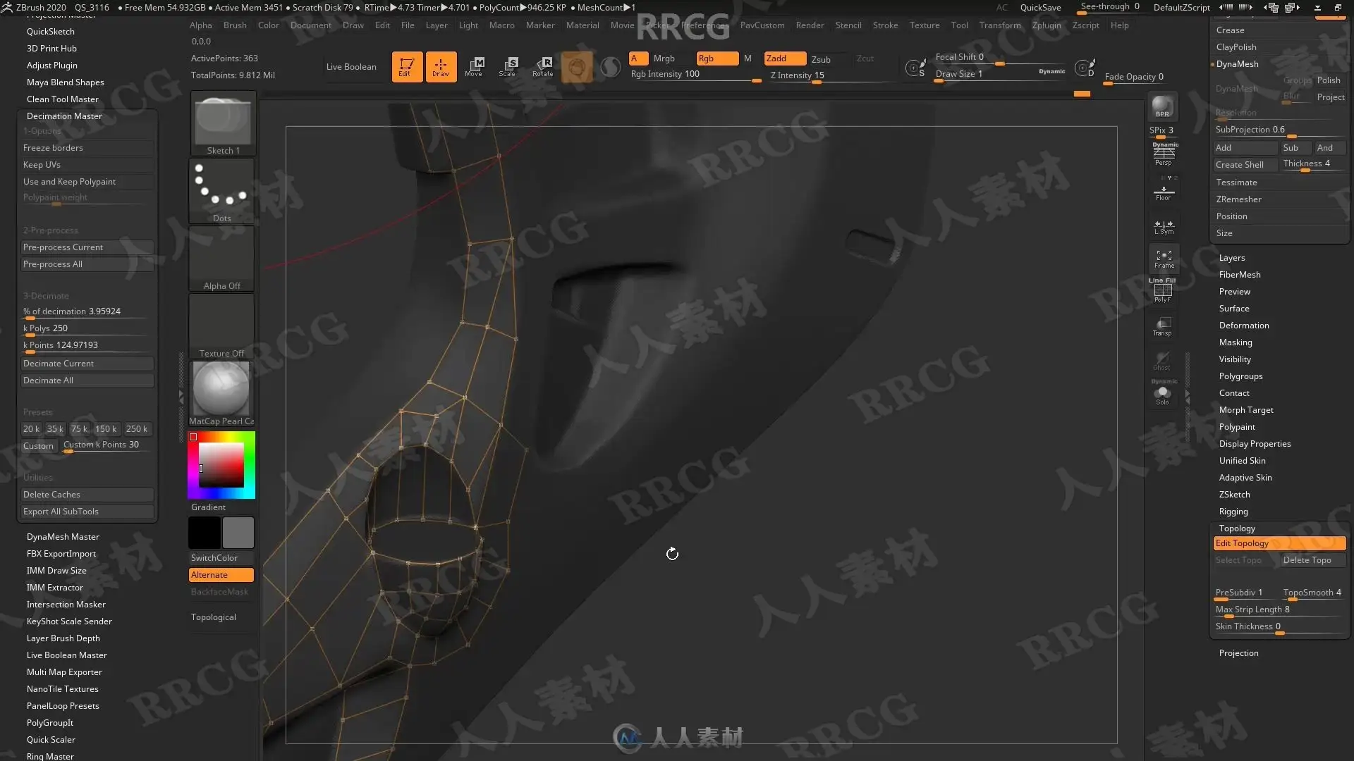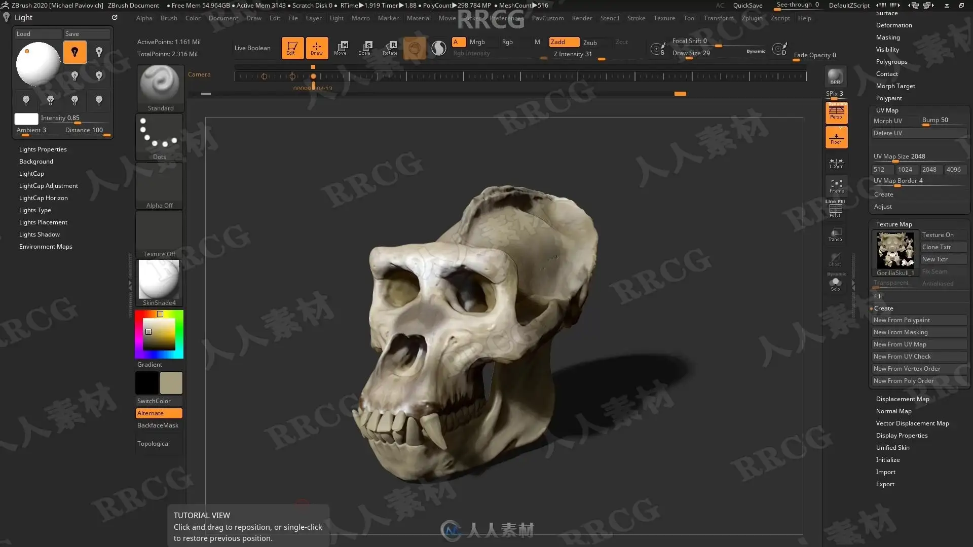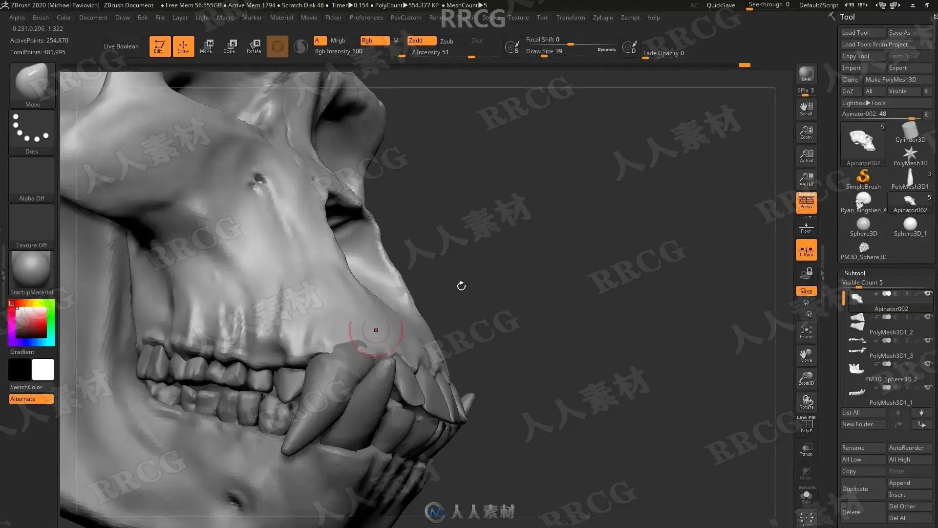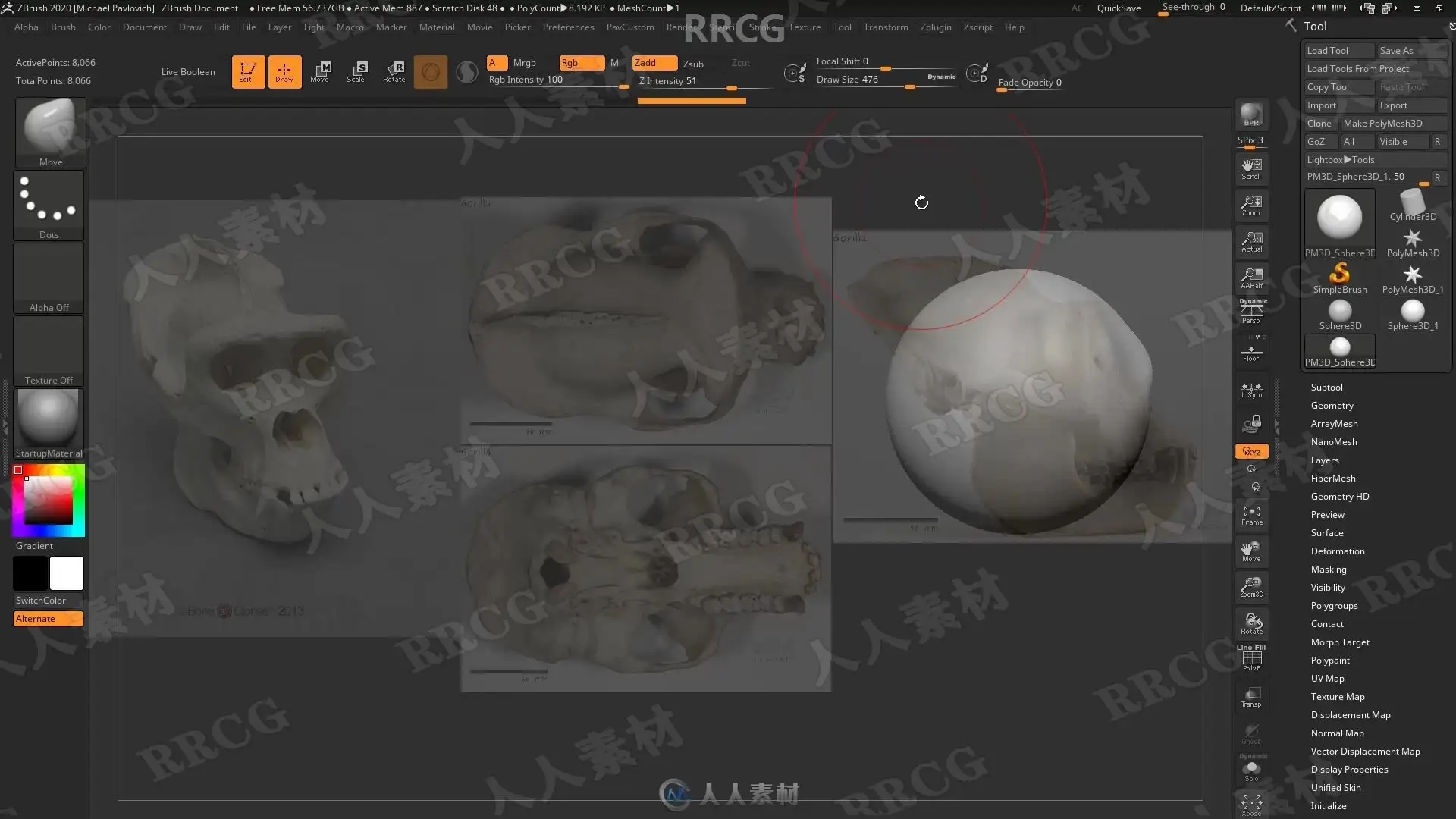 本教程是关于机械头骨数字雕刻建模完整制作流程视频教程,时长:13小时,大小:6.7 GB,MP4高清视频格式,教程使用软件:Zbrush,Maya,Substance Painter,Marmoset等,附源文件,作者:Michael Pavlovich,共113个章节,语言:俄语。