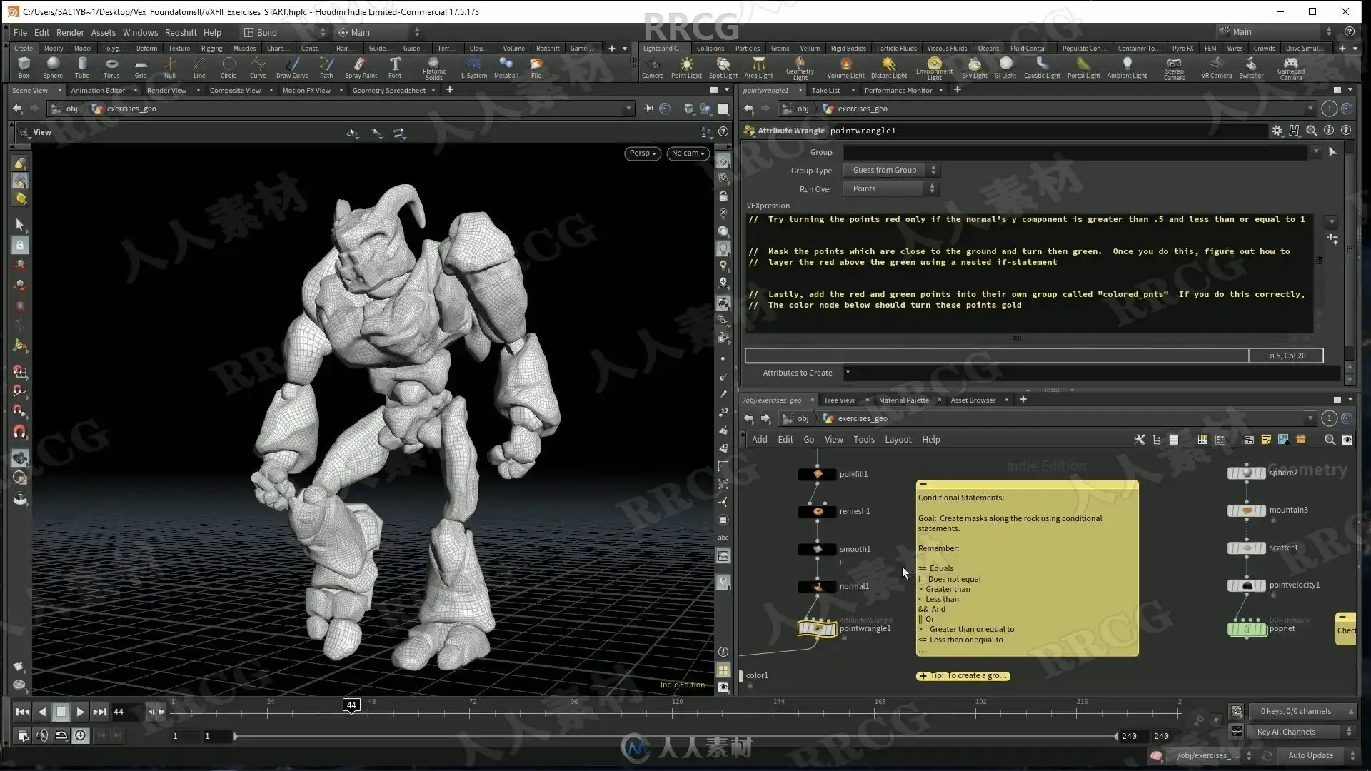 Once this is established, we’ll then create a particle effect that utilizes vex in a practical way so that you can get an idea of how it applies to a production scenario. Finally, the last portion of the course is dedicated towards a wide variety of exercises that help you practice vex in a way that truly solidifies the main ideas and prepares you for more complex tasks in the future.